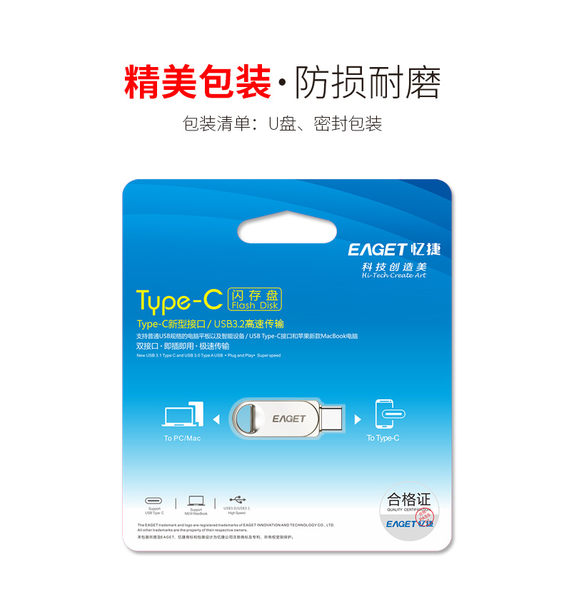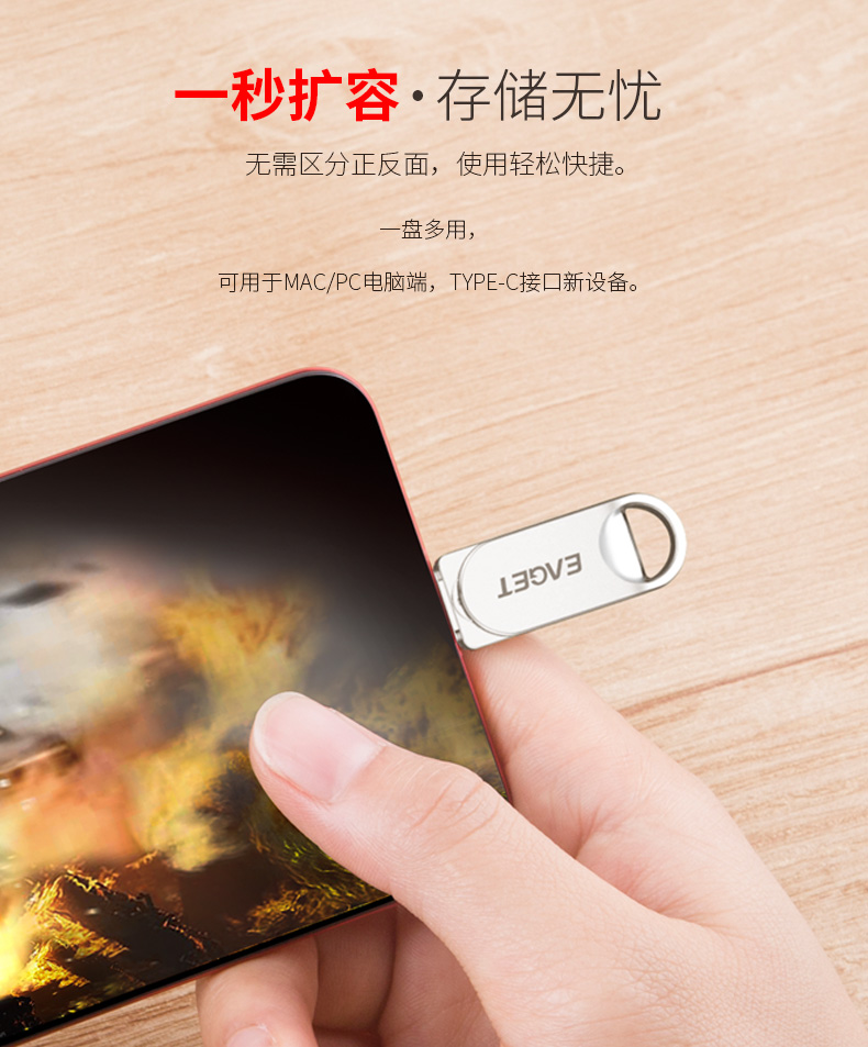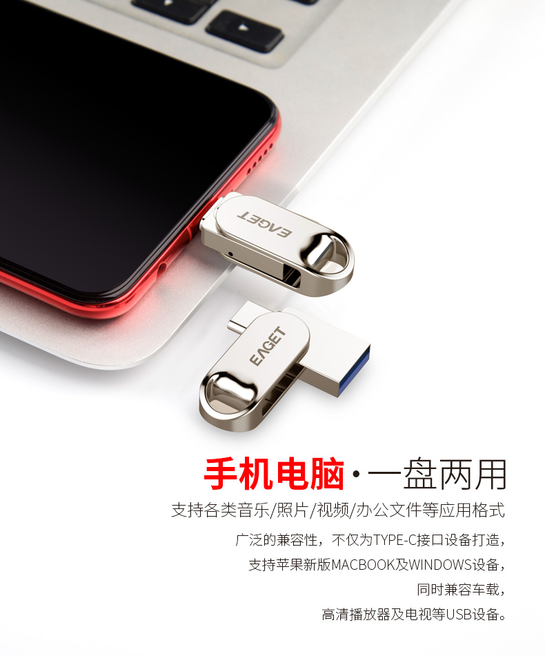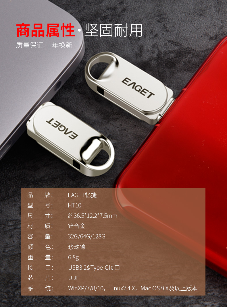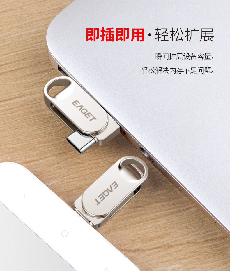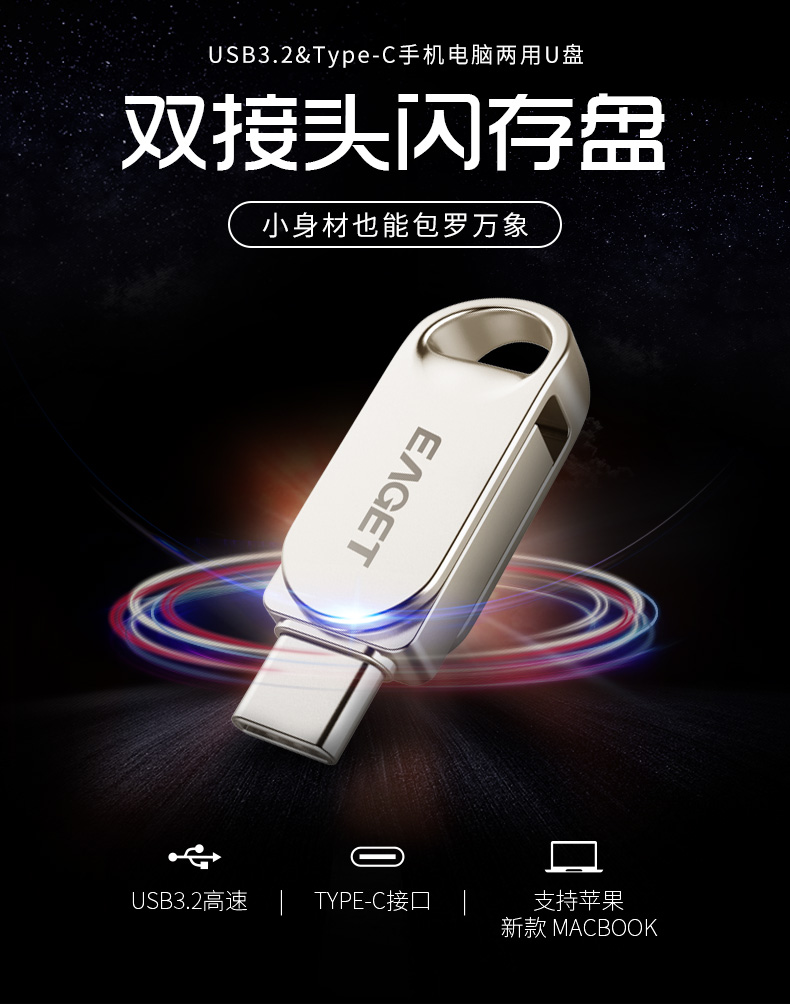 忆捷 HT10手机U盘Type-C USB3.2双接口手机电脑多用车载旋转优盘金属 32G