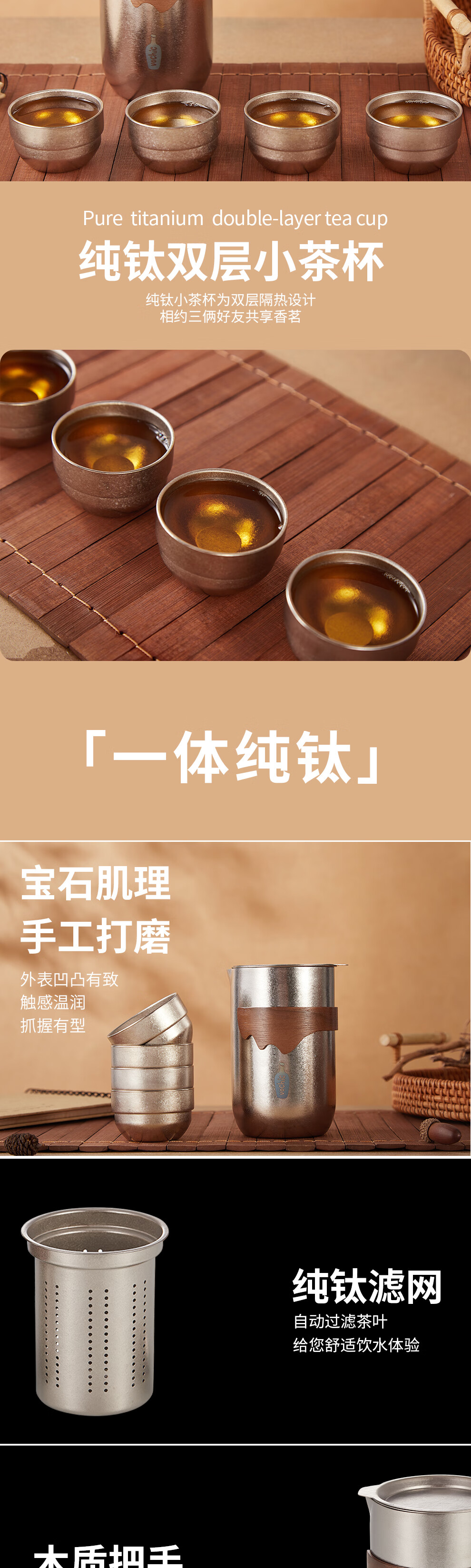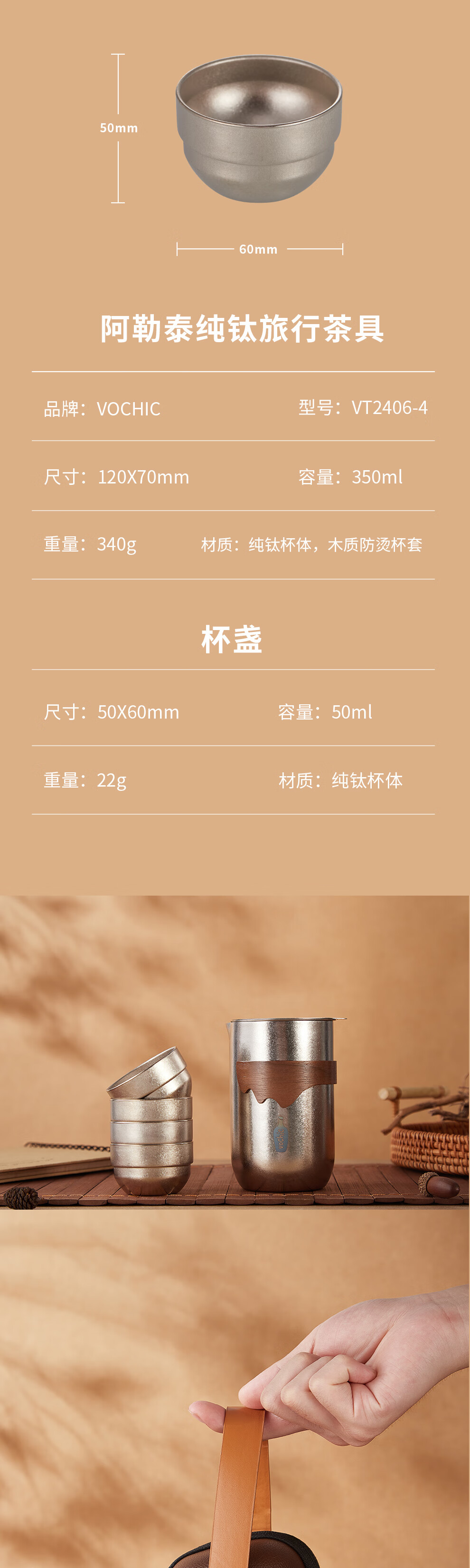 VOCHIC 阿勒泰纯钛旅行茶具VT2406-3 350ml