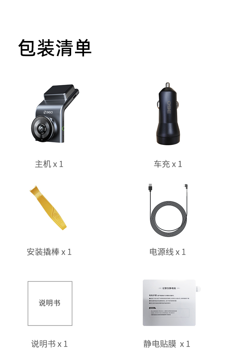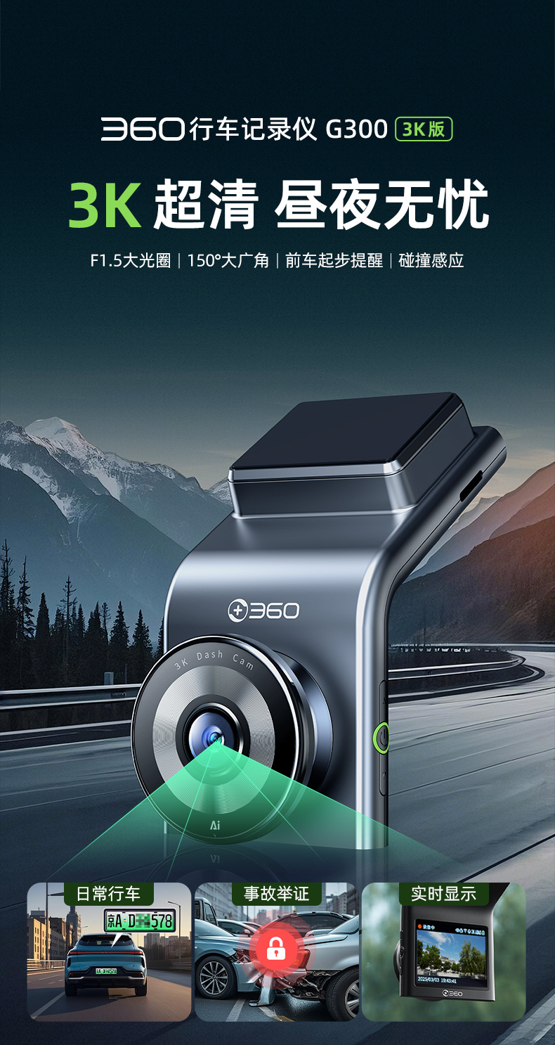 【专属】360行车记录仪G300 3K版 前车起步提醒 碰撞感应紧急录制 F1.5大光圈 150°大广角 AI语音声控
