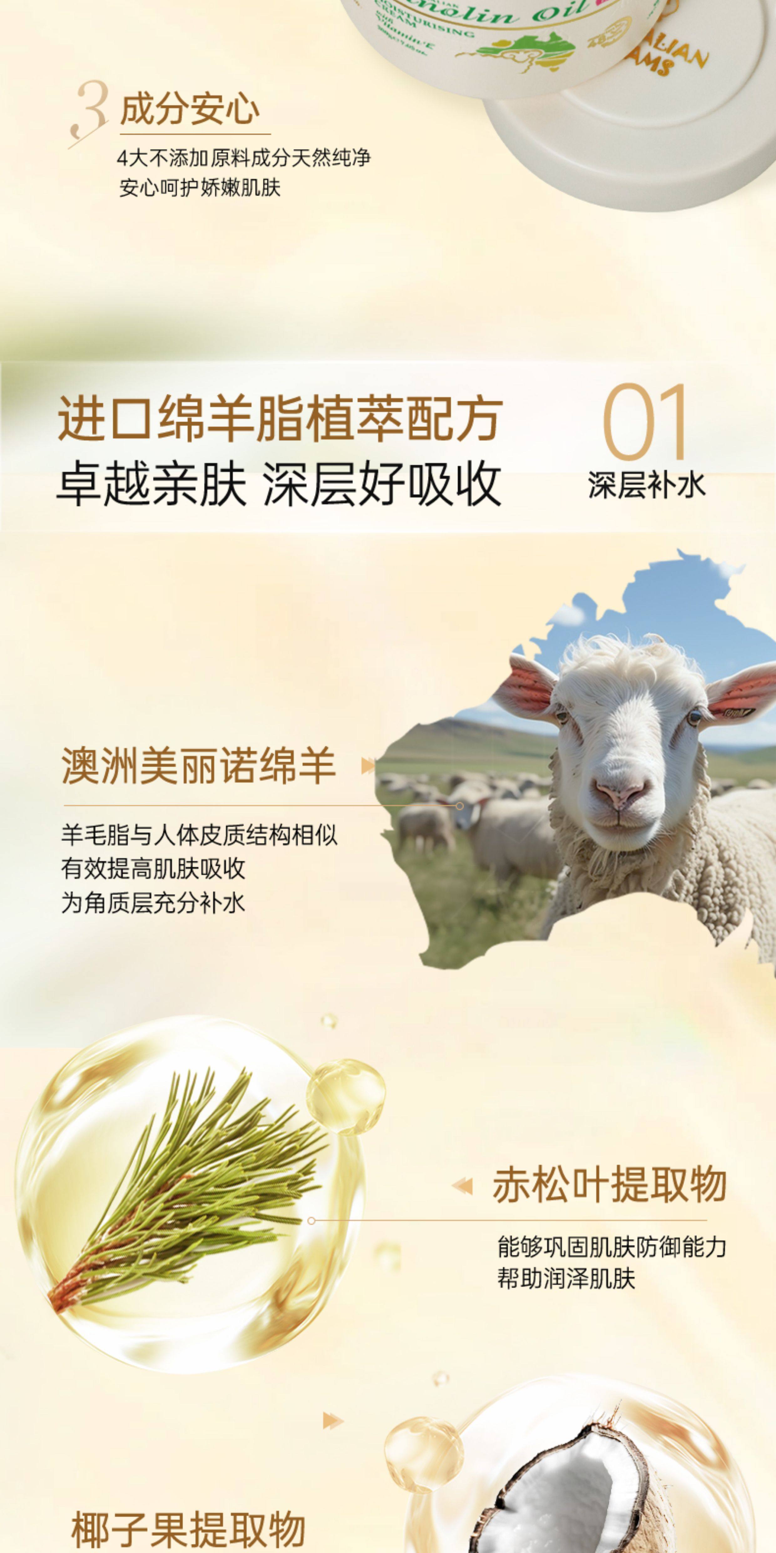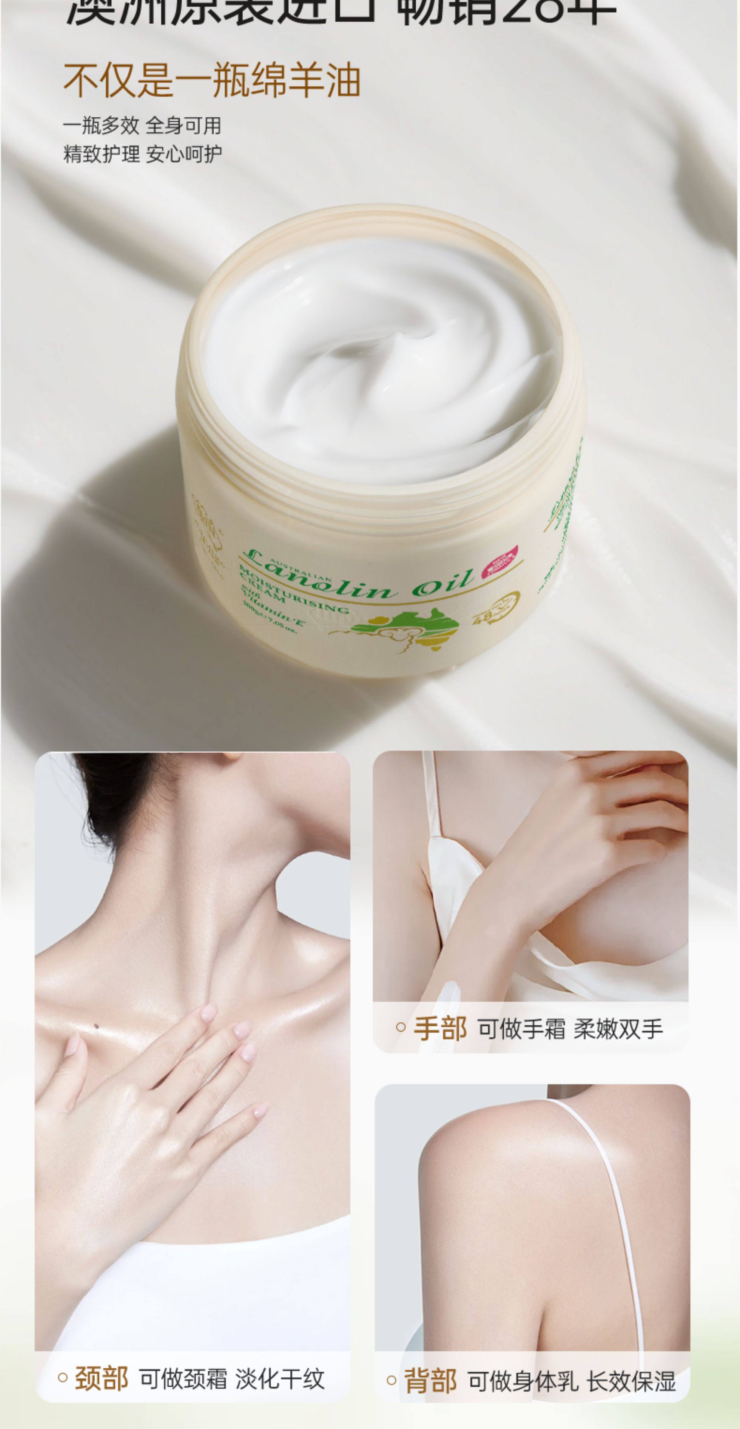 200g澳芝曼绵羊脂维生素E霜 羊脂呵护 润泽肌肤