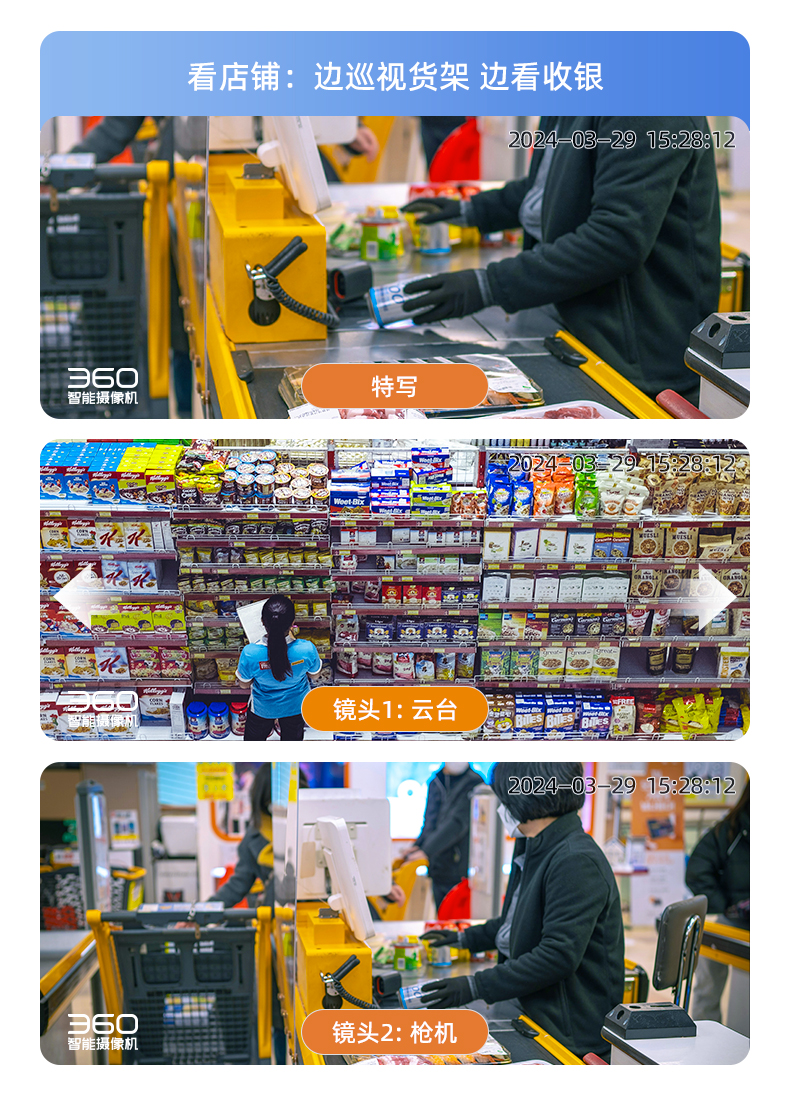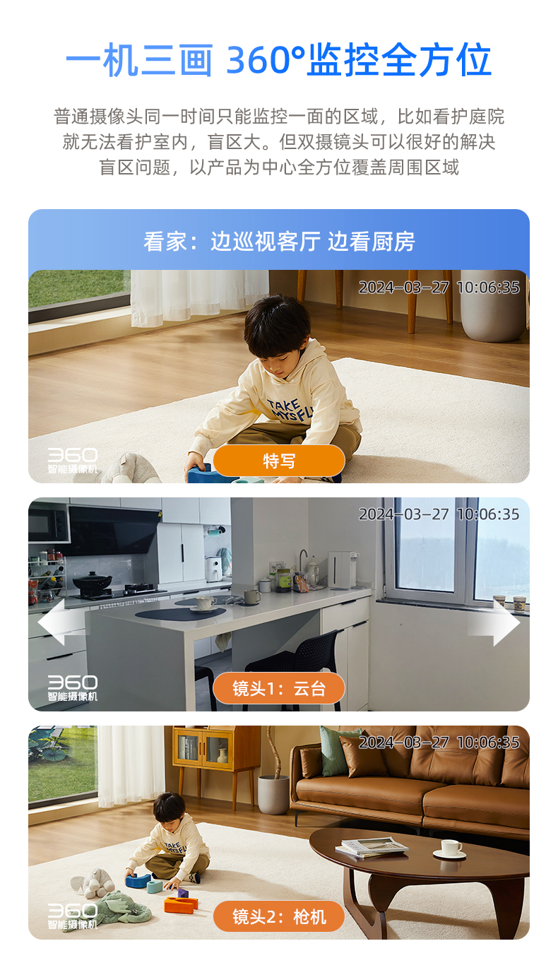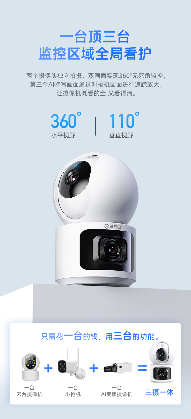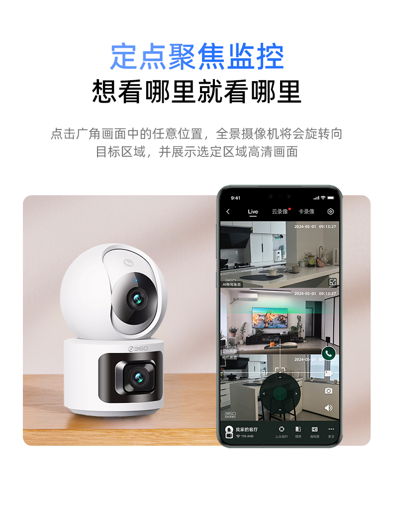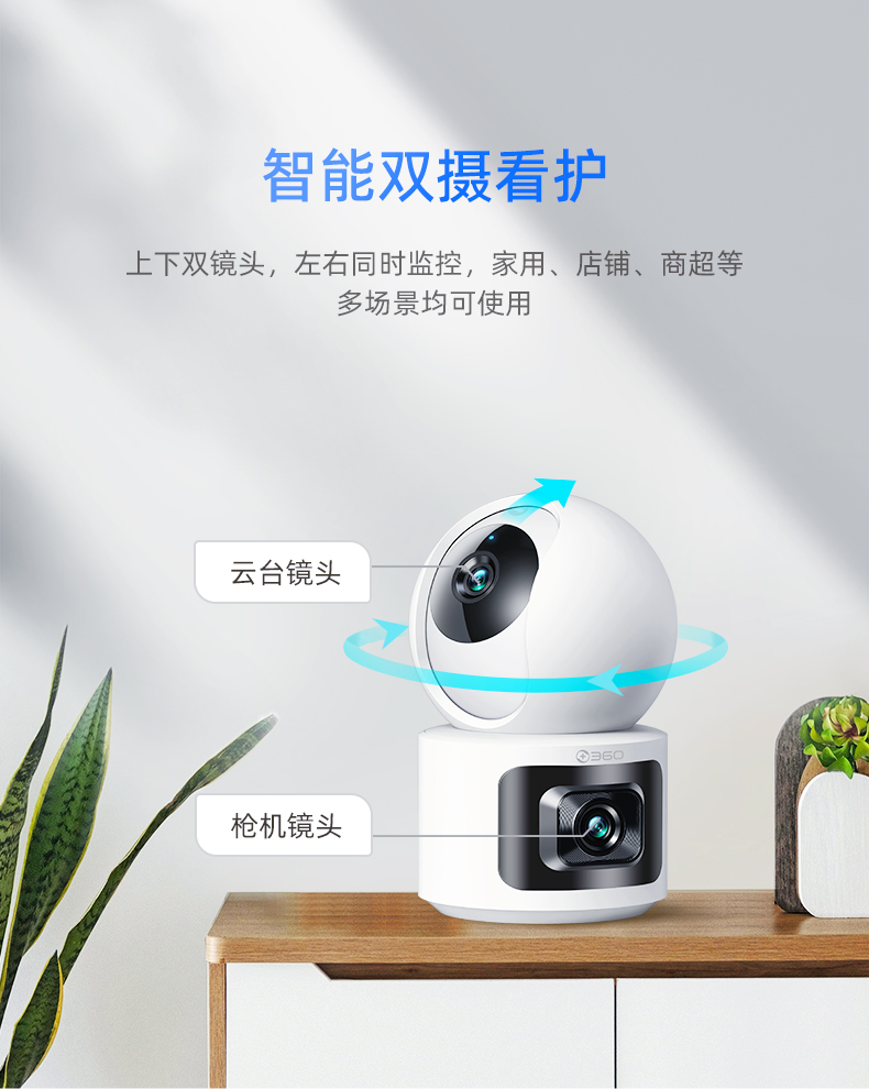 【专属】360智能摄像机6C双摄版 一机双画 双200万镜头 微光夜视 AI移动侦测 360度全景画面 双向通话功能
