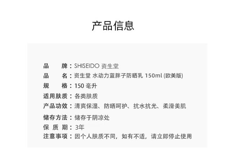 【保税仓cn】Shiseido资生堂蓝胖子防晒150ml(效期:2026.11)