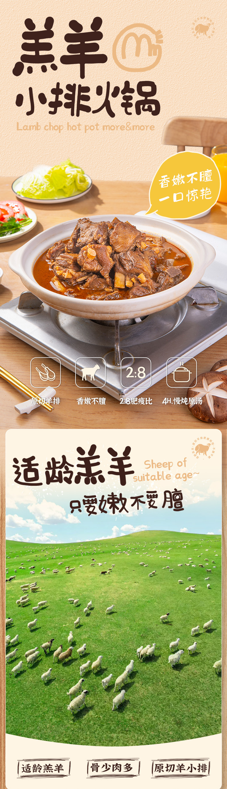 【莫小小莫羔羊小排火锅】精选嫩羔羊,原切羔羊小排,非合成肉,28肥瘦比,不柴不腻,羊排涮着吃,味蕾新享受!