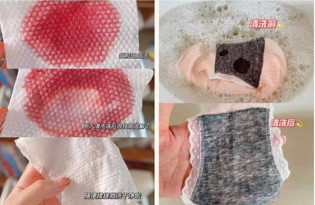 复合生物酶迅速瓦解血渍,10 秒强力祛血渍,生理期的尴尬轻松搞定。