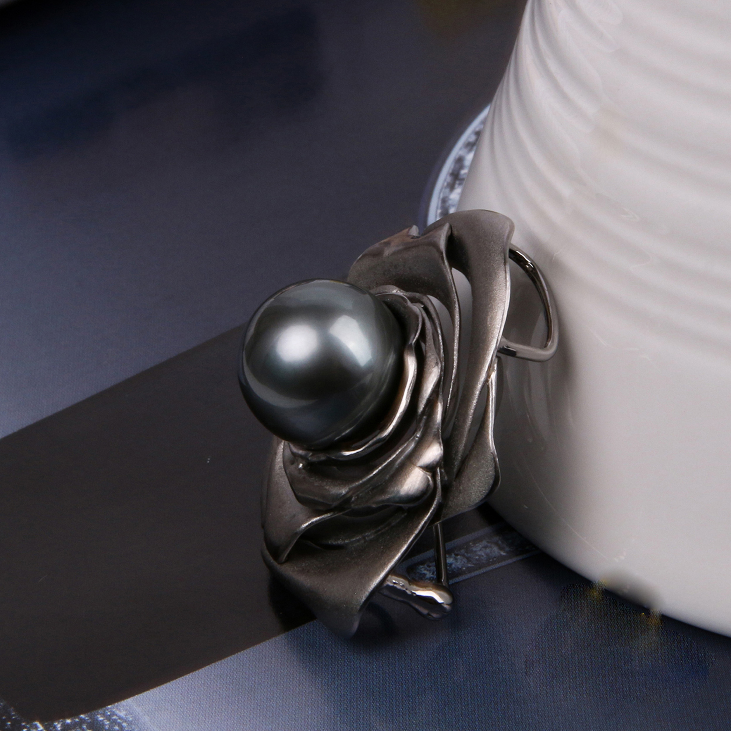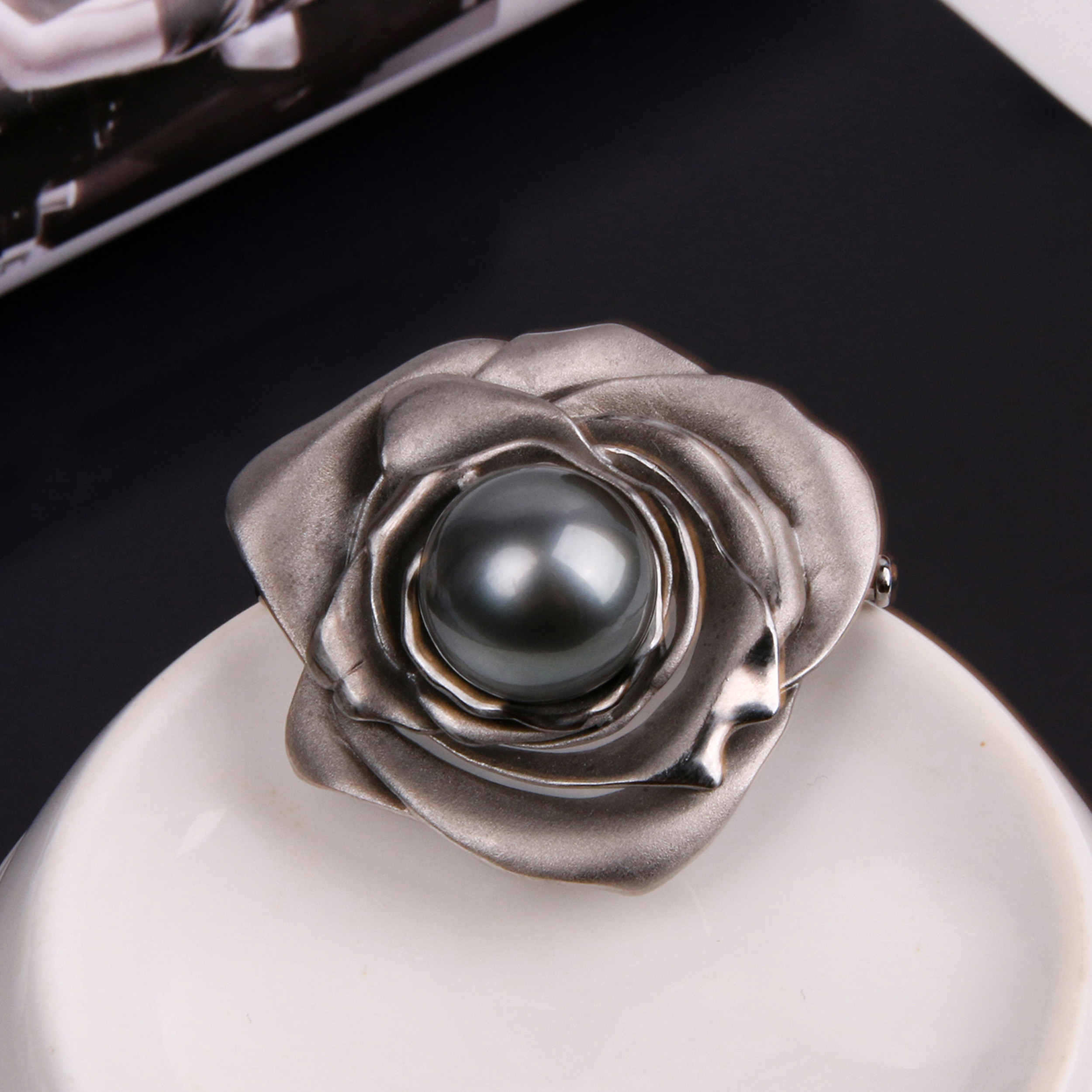 大溪地黑珍珠山茶花胸针吊坠 DZ23