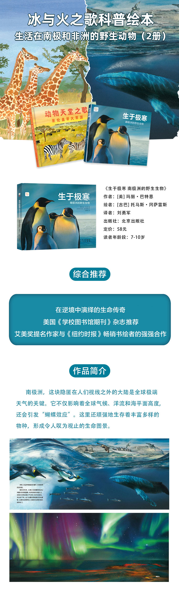 书名:冰与火之歌科普绘本 生活在南极和非洲的野生动物 (全2册):动物天堂之歌+南极洲的野生生物