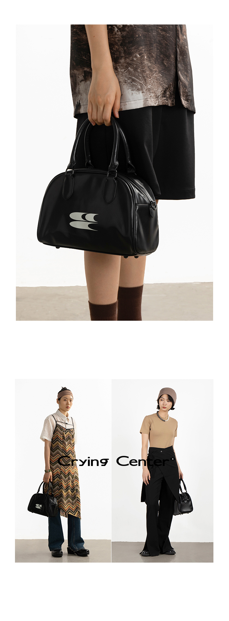 【大号】CryingCenter 未来复古系列 手提斜跨波士顿包