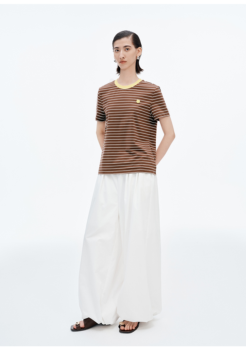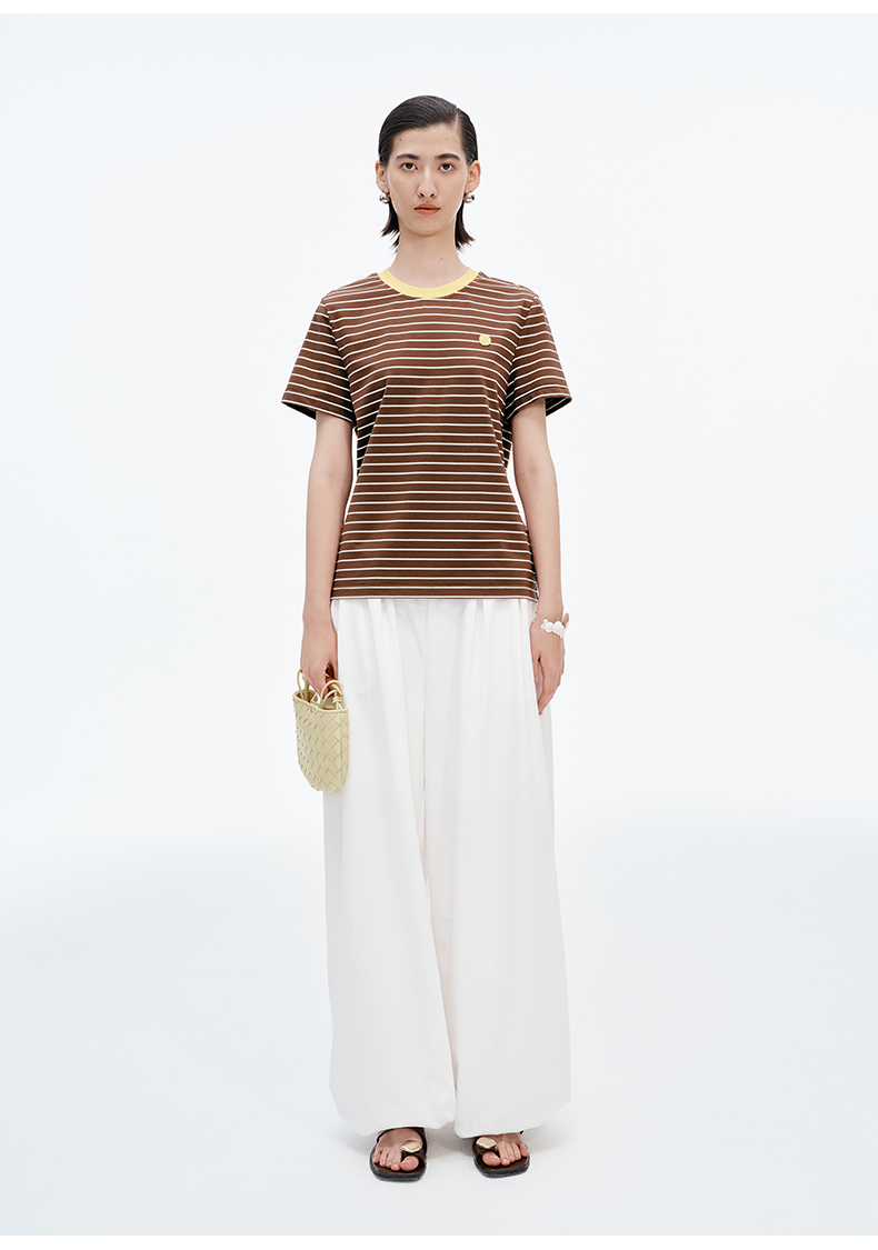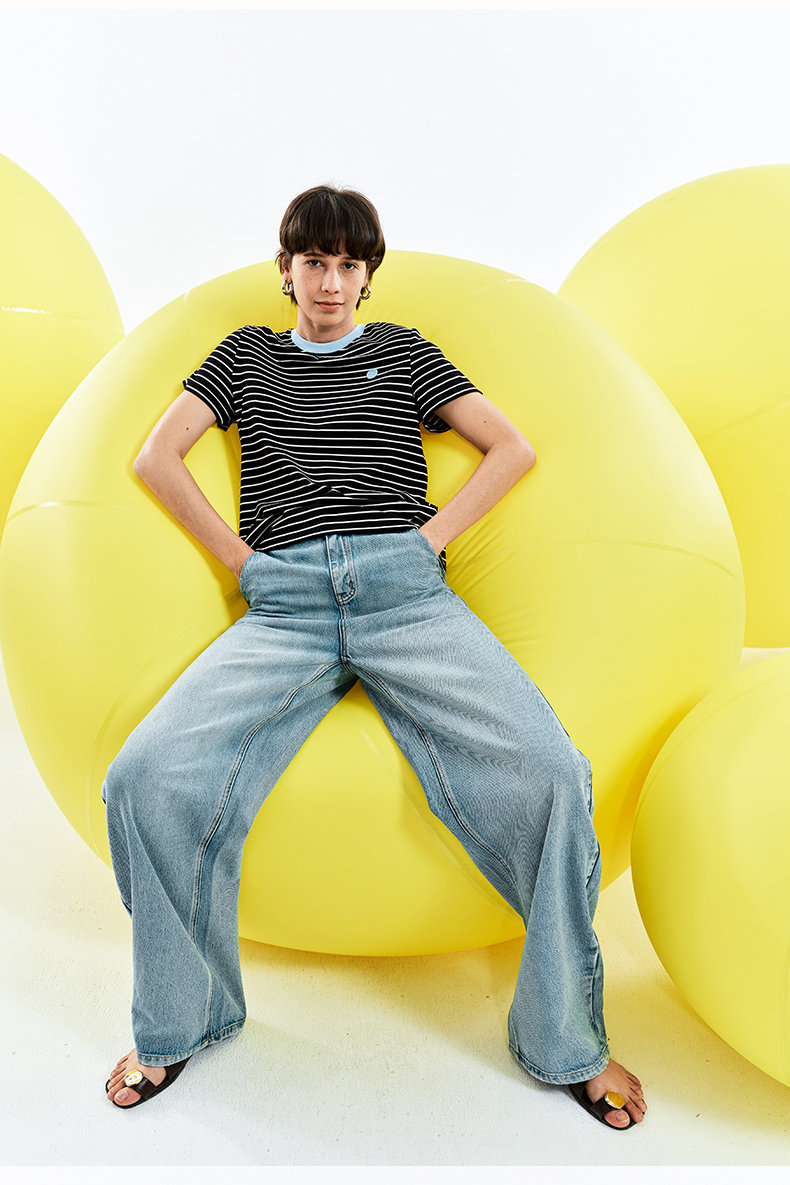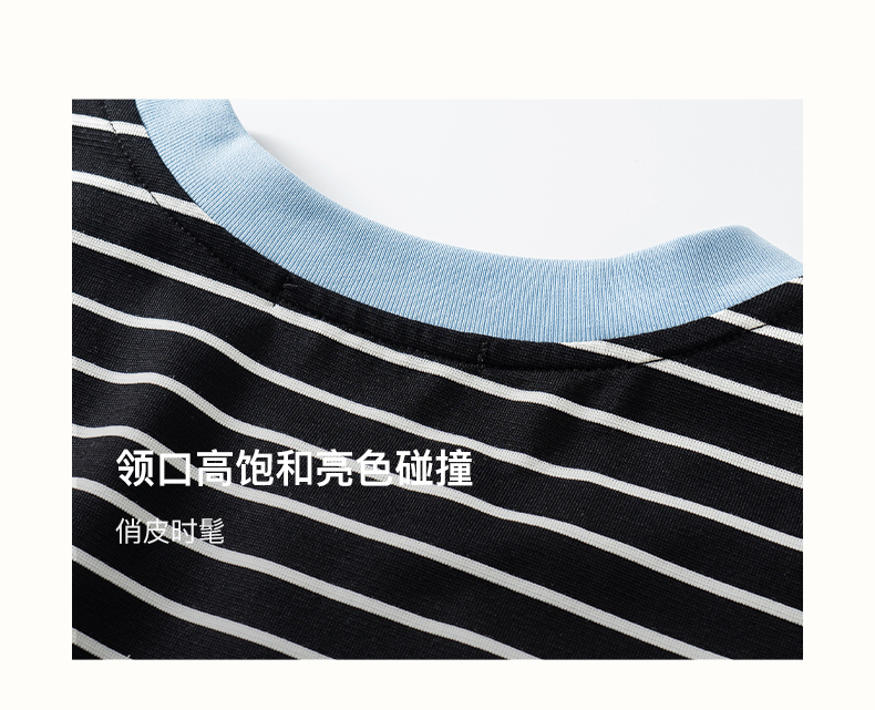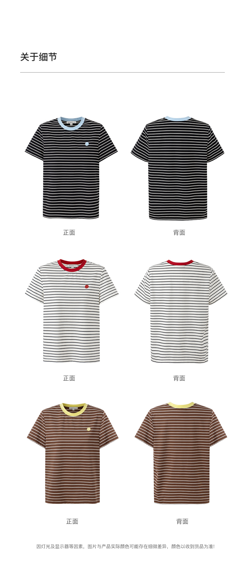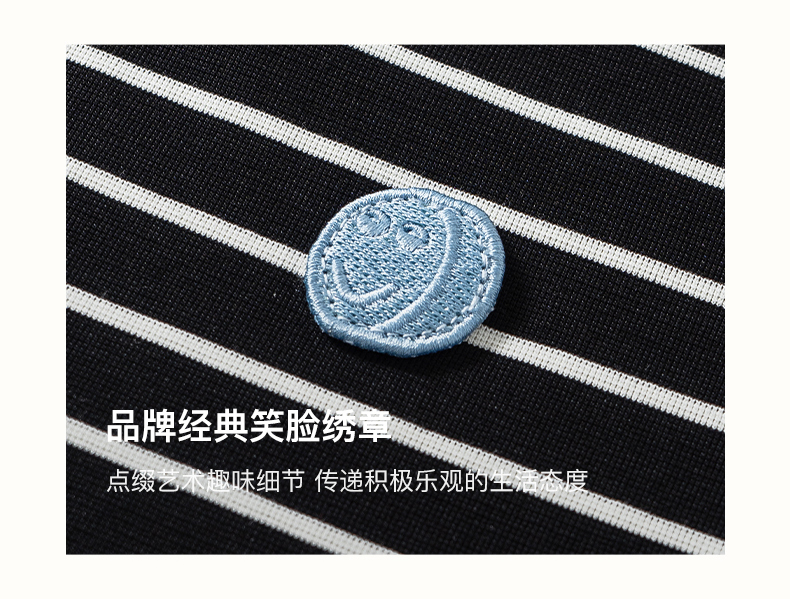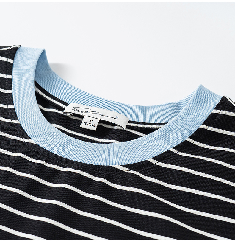 【笑脸衣橱】SELFWHO笑脸衣橱条纹短袖t恤女2025夏新款小个子宽松圆领正肩上衣