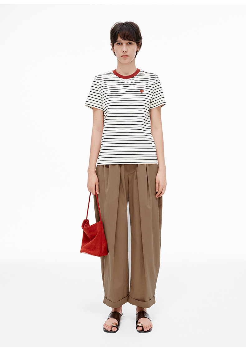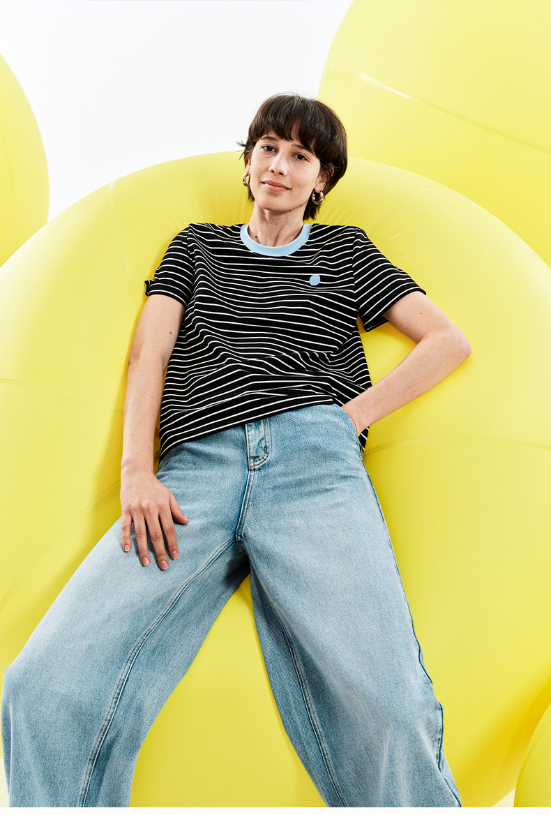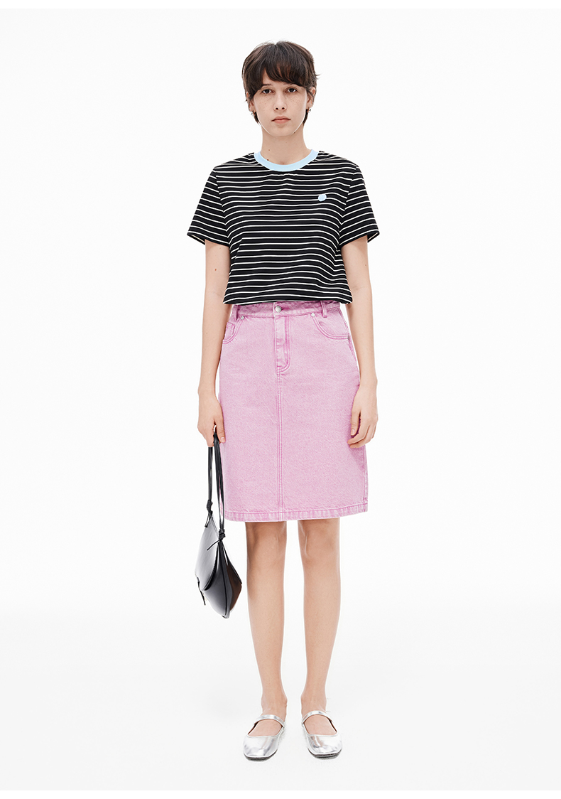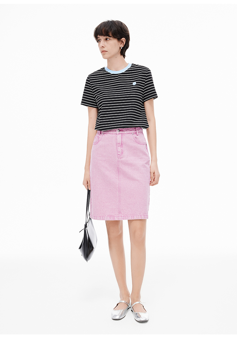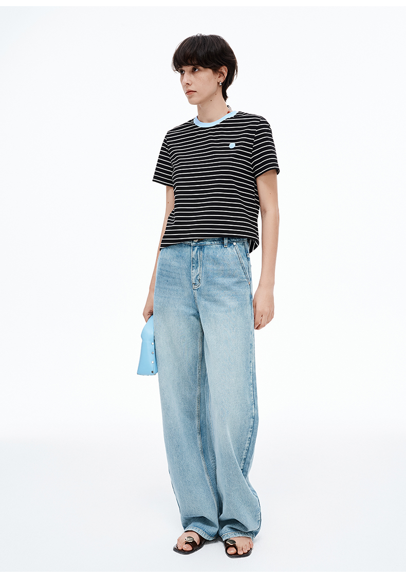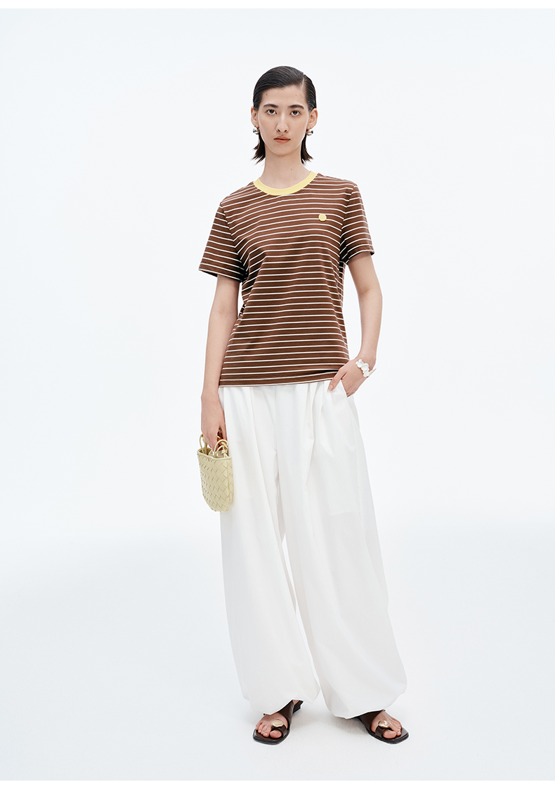 【笑脸衣橱】SELFWHO笑脸衣橱条纹短袖t恤女2025夏新款小个子宽松圆领正肩上衣
