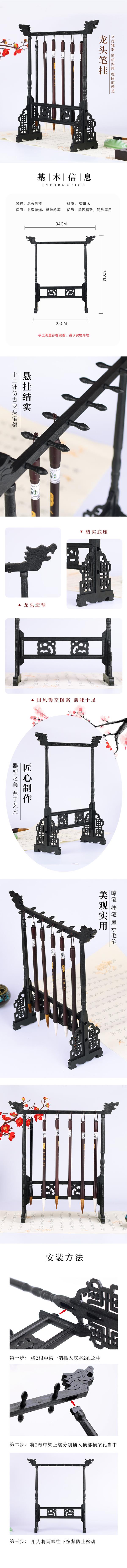 【庆学堂】文房四宝笔架毛笔挂毛笔架笔挂学生文房四宝复古挂毛笔的笔架鸡翅木实木创意摆件全套毛笔架子书法