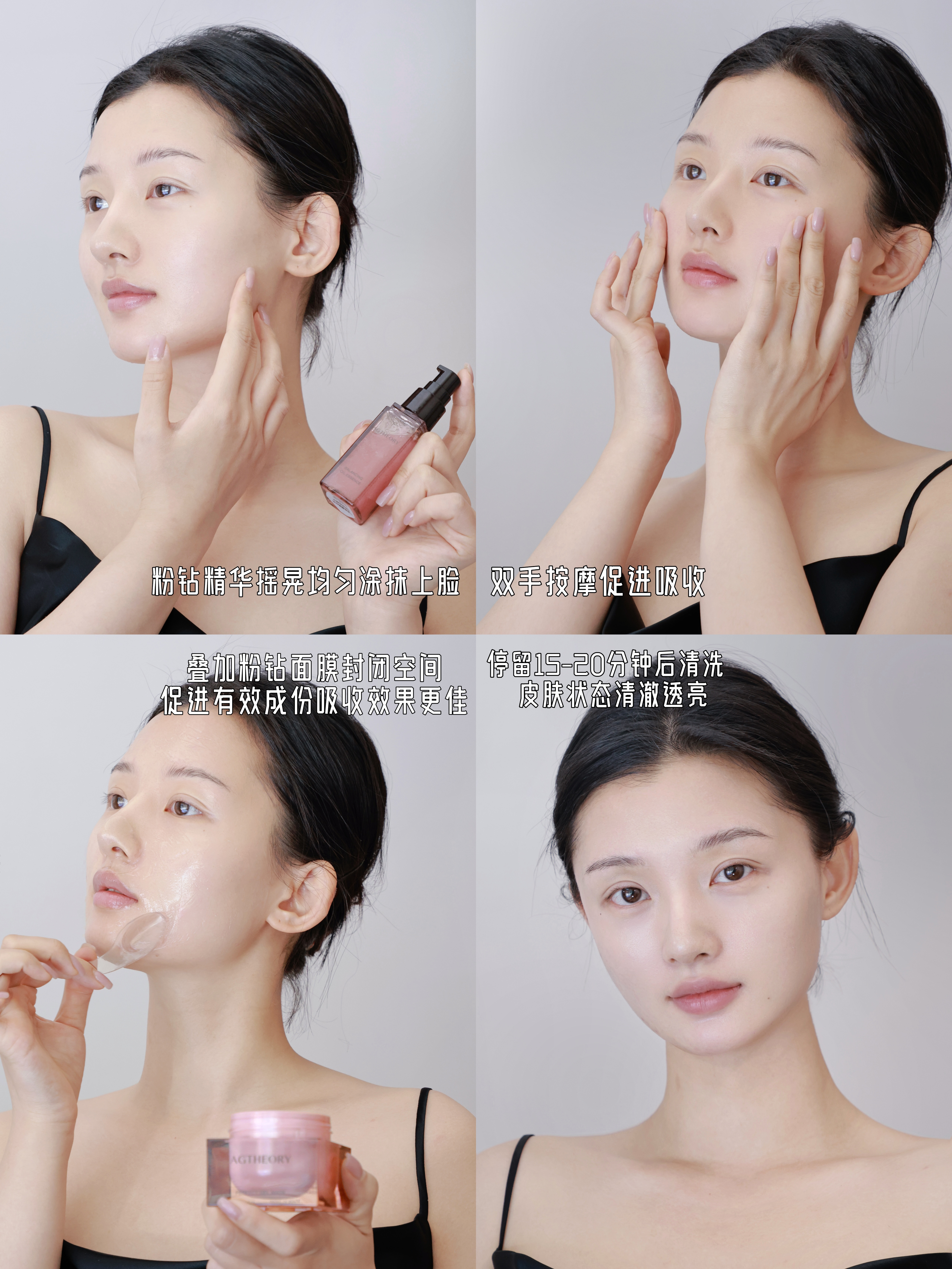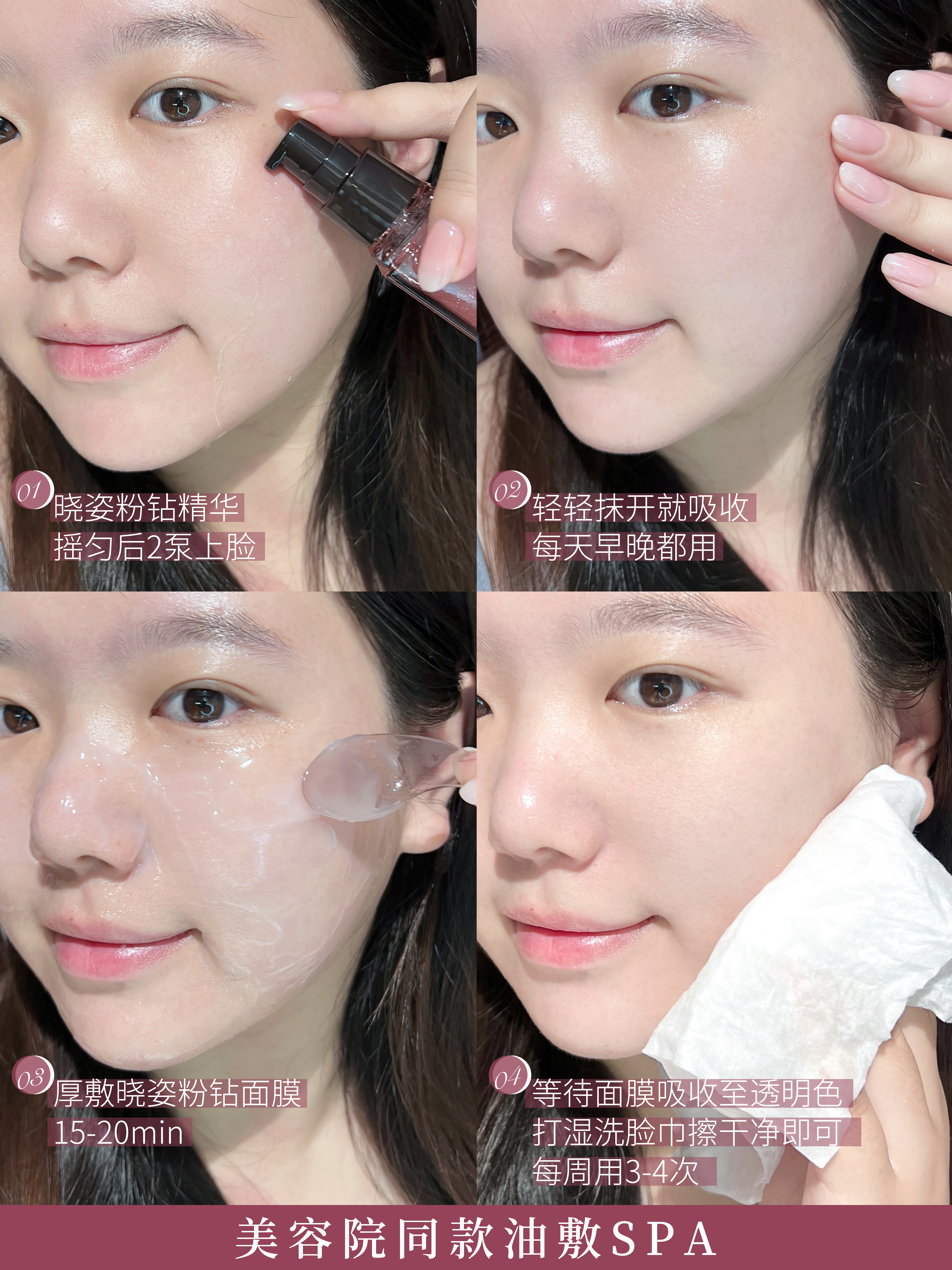 3、搭配粉钻精华三明治厚敷,配合按摩手法,简易版家庭油敷法