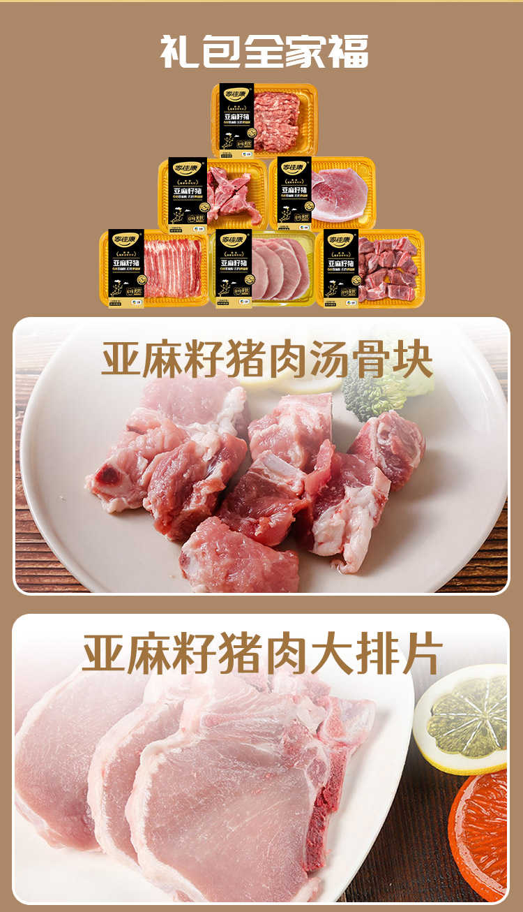 中粮家佳康 亚麻籽猪肉万事如意礼包1850g【实物/礼券】