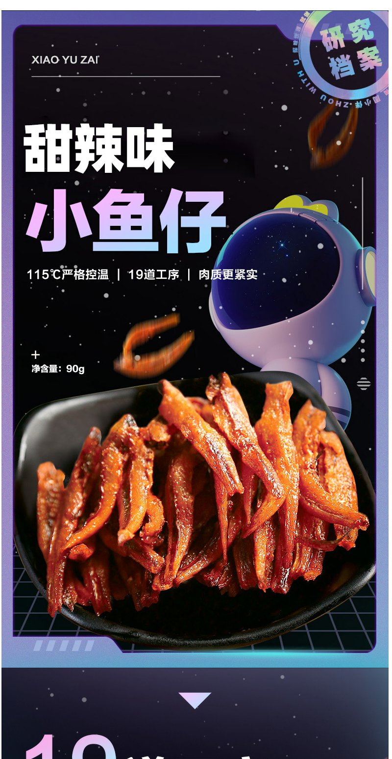 周黑鸭 麻辣甜小鱼仔 麻辣鱼干海鲜小吃 90g*5袋
