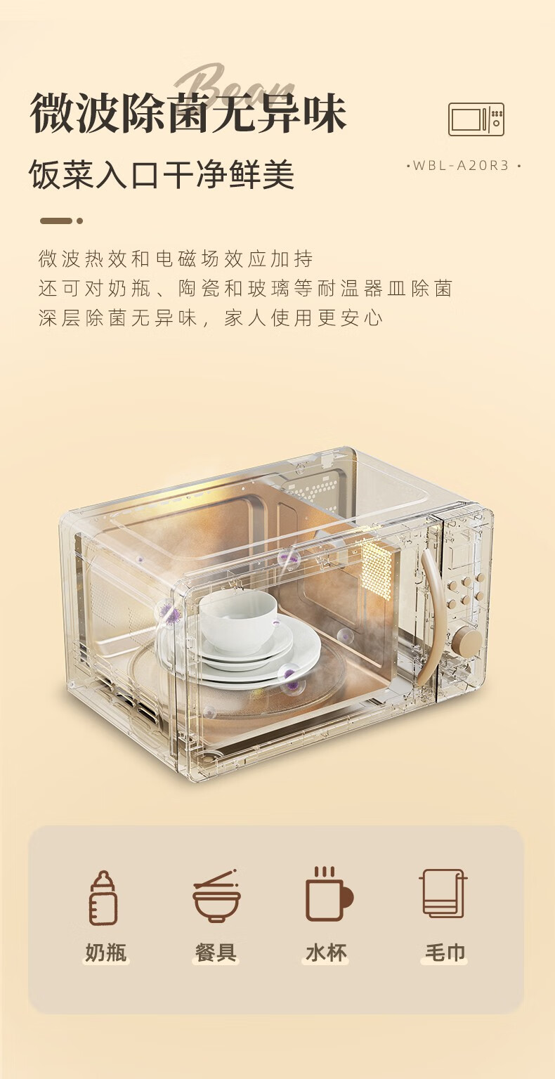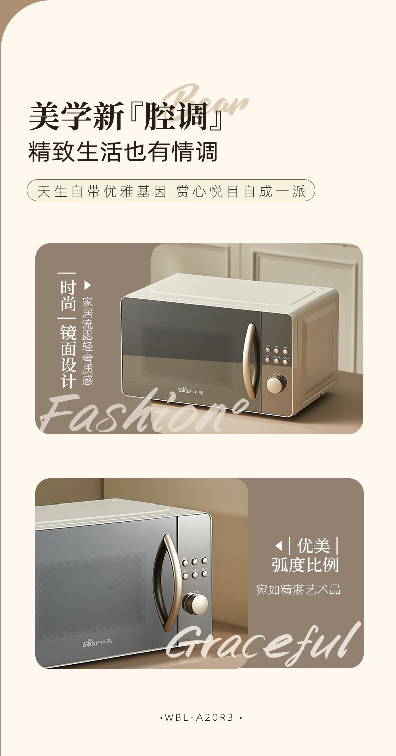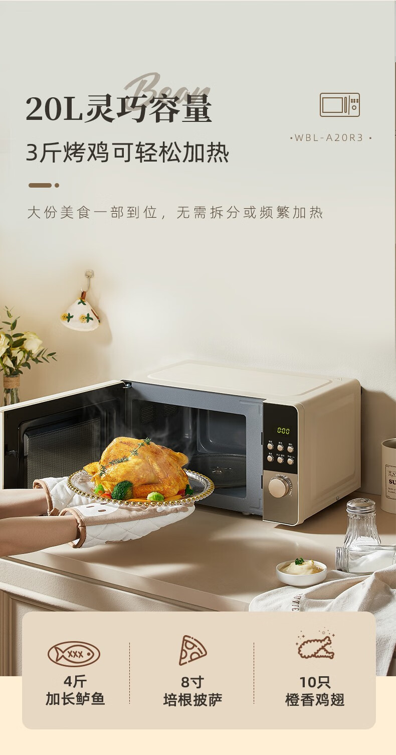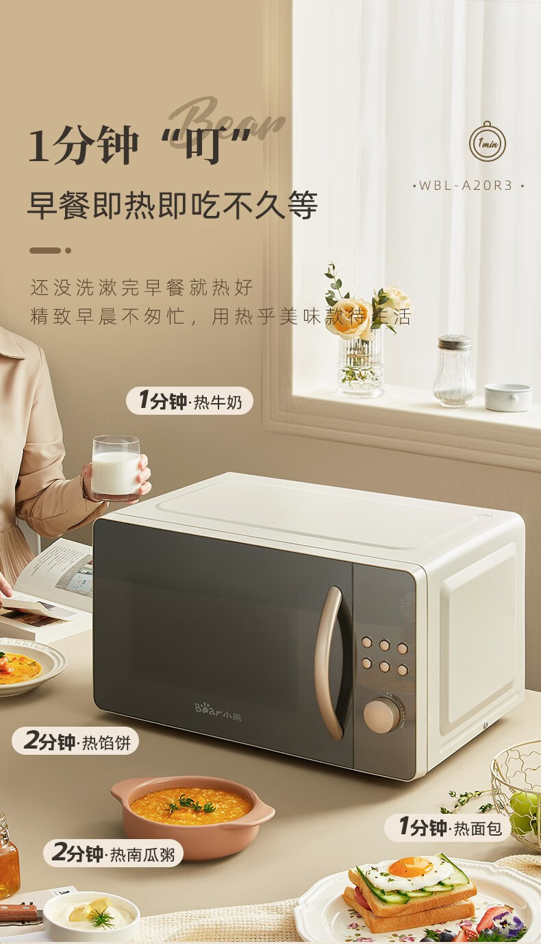 小熊(Bear) 微波炉 家用快捷 360°转盘加热20L五档火力 WBL-A20R3 20L容量+旋扭操控+快速加热