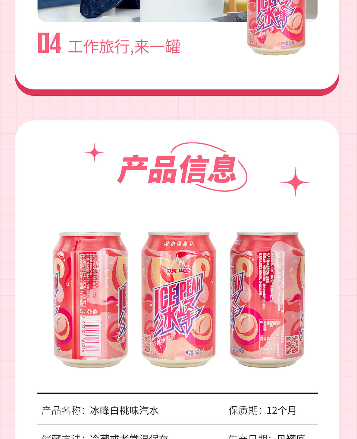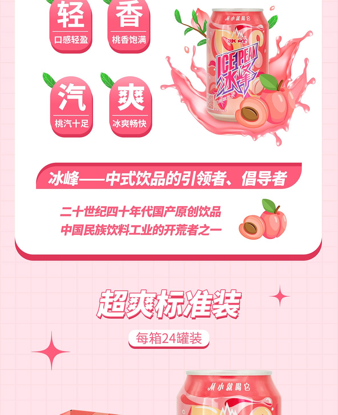 冰峰白桃味汽水330ml*24罐装碳酸饮料(自提)