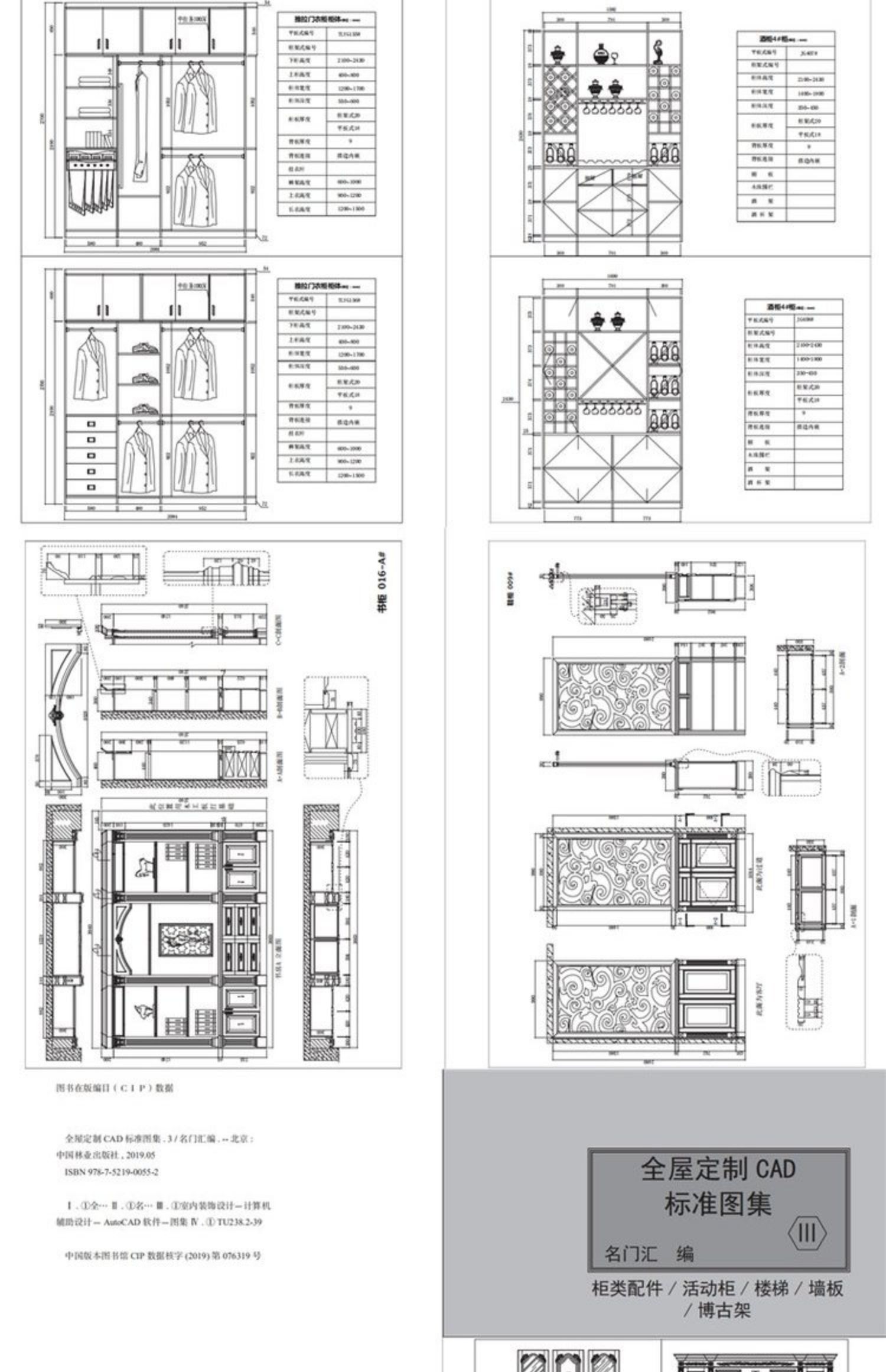 全屋定制CAD标准图集1 2 3 3本I II III木门屏风衣柜酒柜书柜鞋柜玄关柜楼梯墙裙板活动柜柜类配件 内含CAD施工图项目源文件