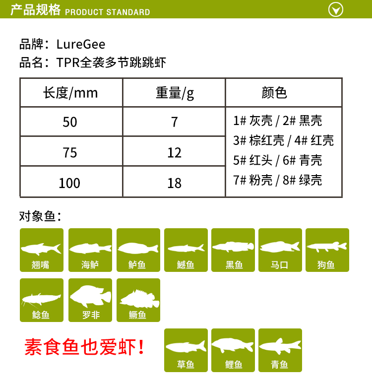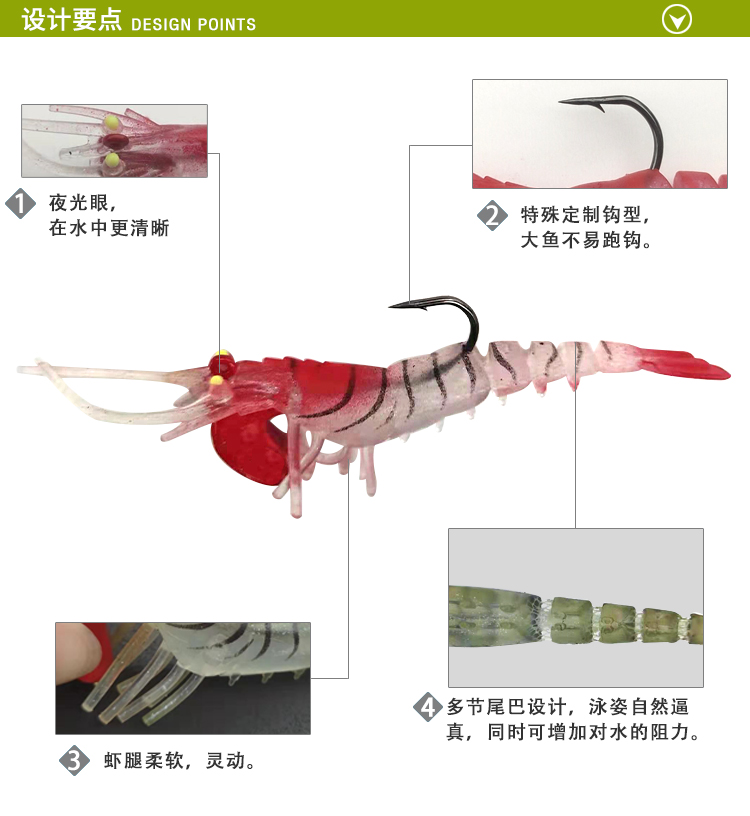 LureGee极限路亚多节跳跳虾仿生虾软虫路亚饵虾形鱼饵鲈鱼鳜鱼饵