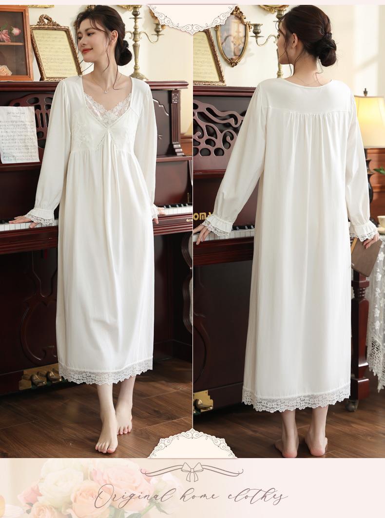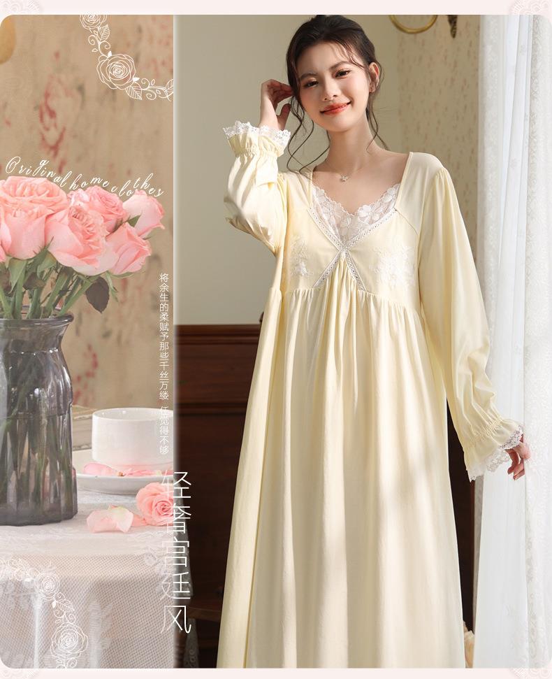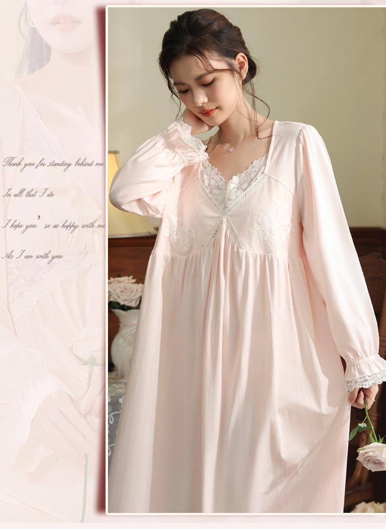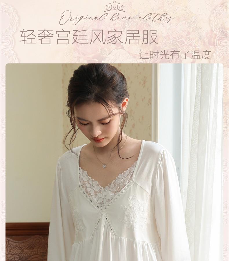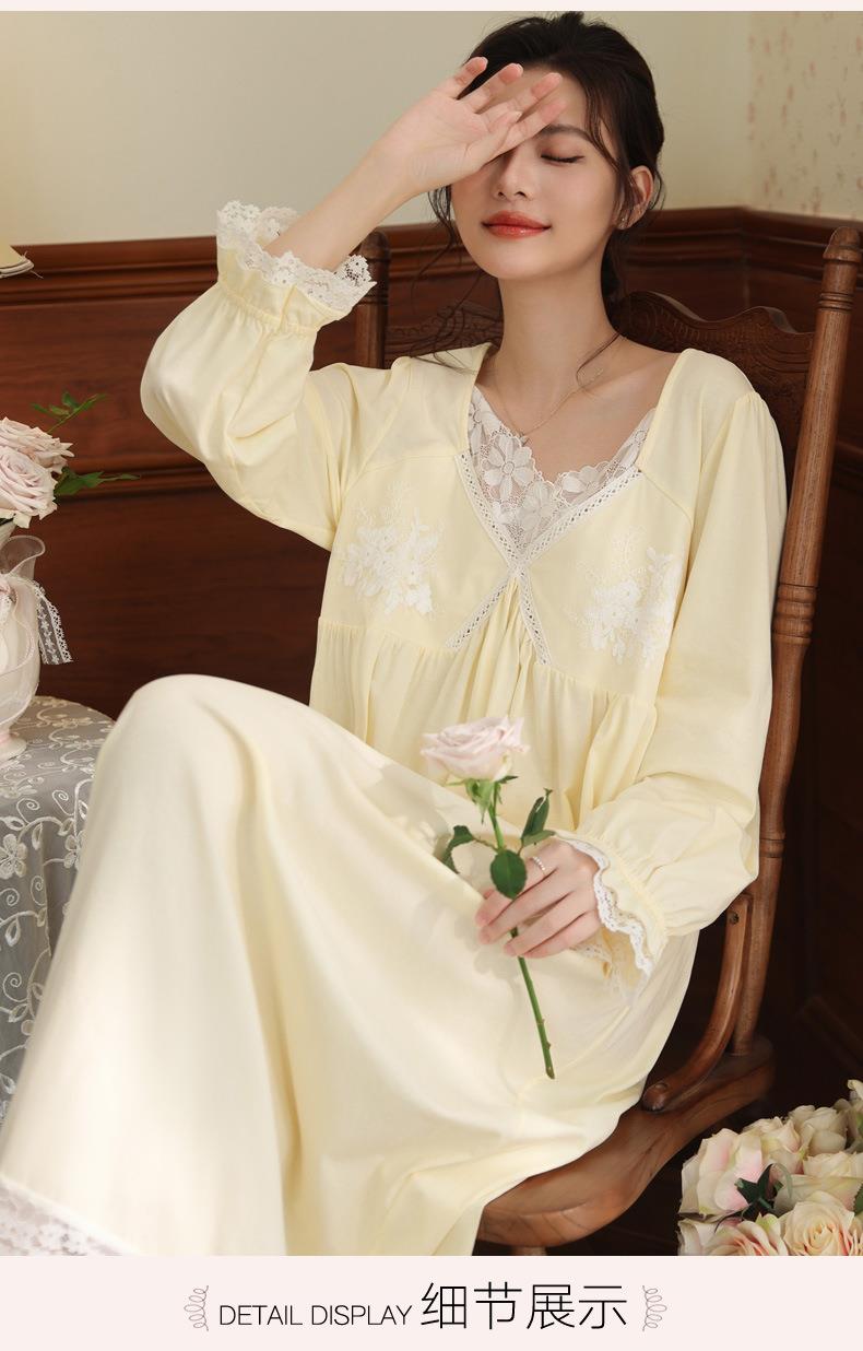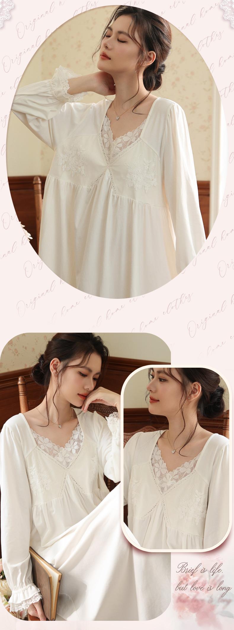 【轻奢宫廷·法式棉质睡裙】2026春季宽松大码长款法式绣花舒适睡衣带胸垫可外穿家居服秋