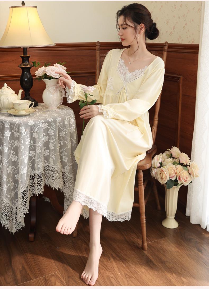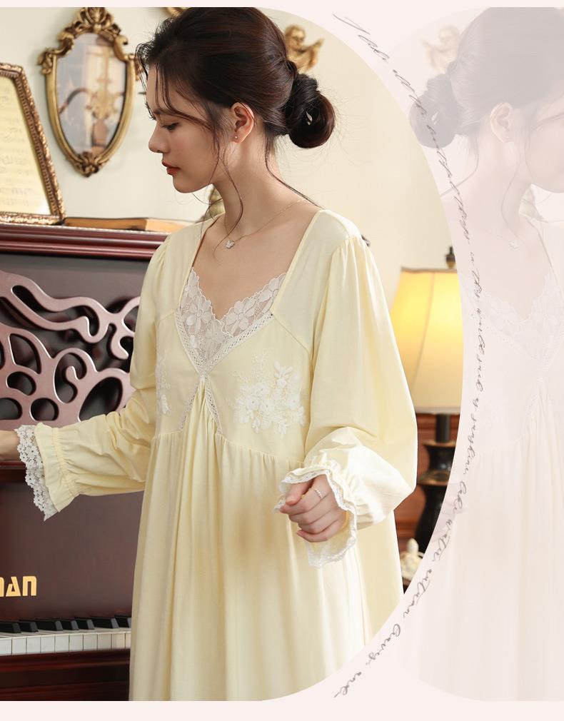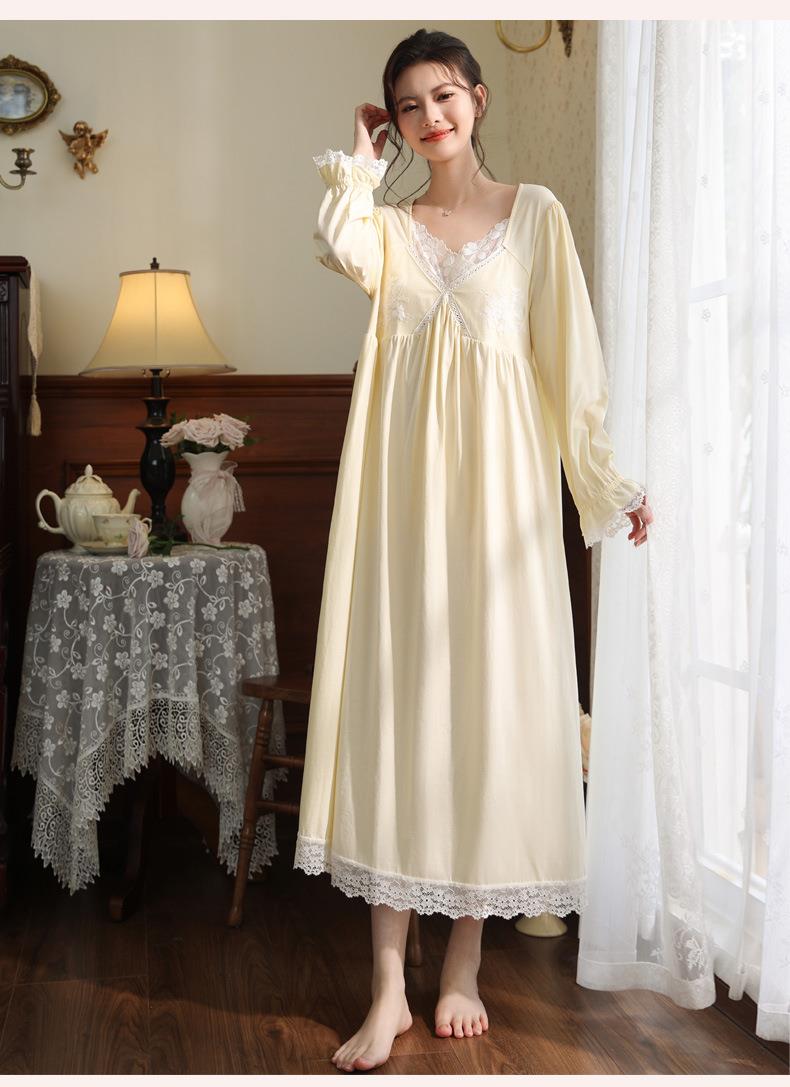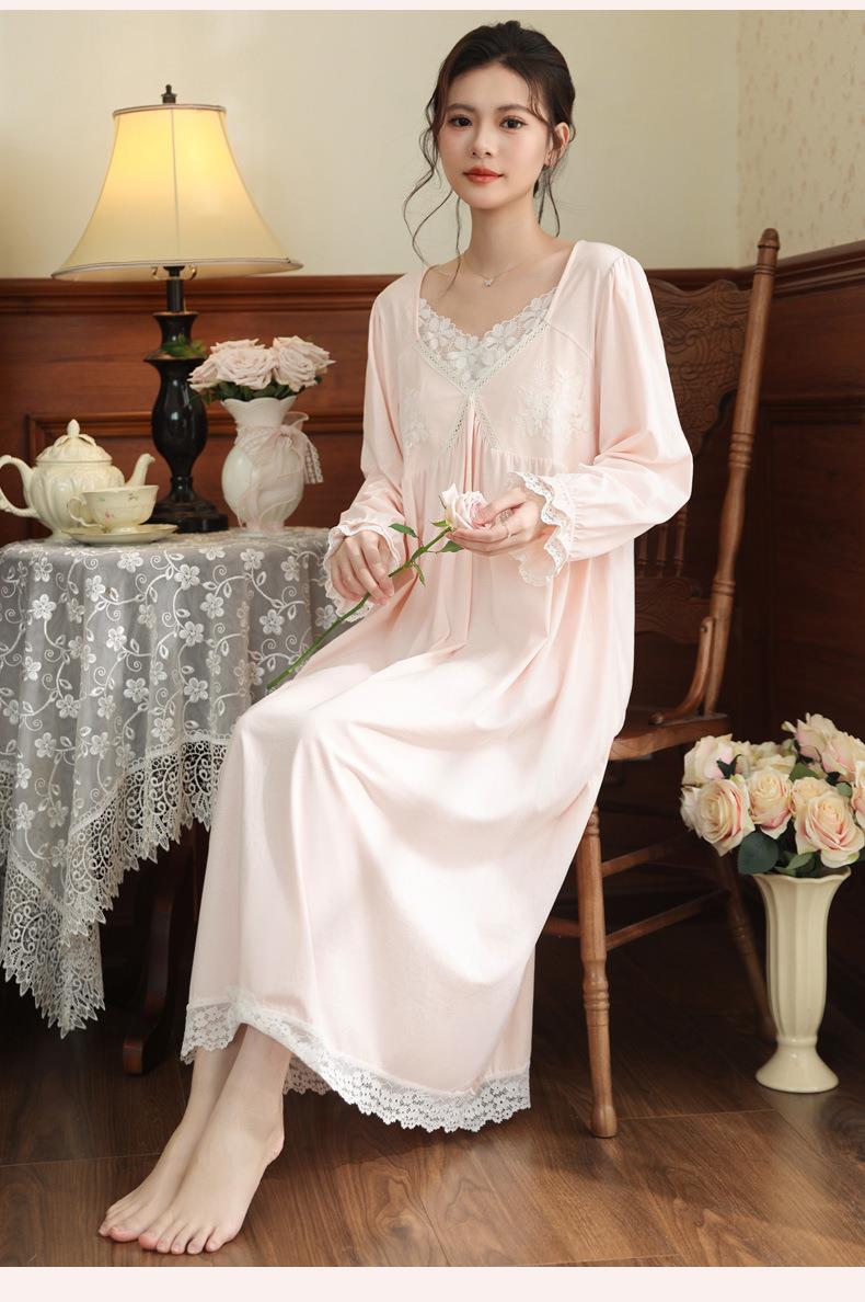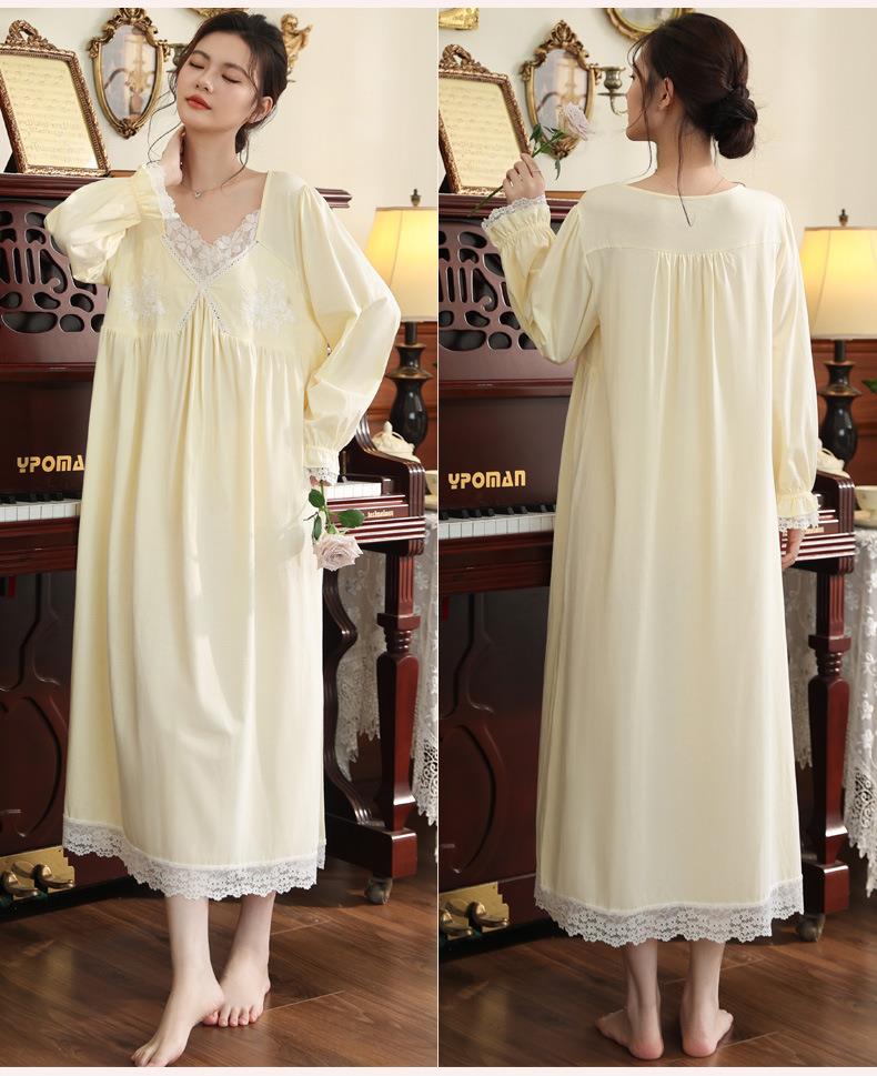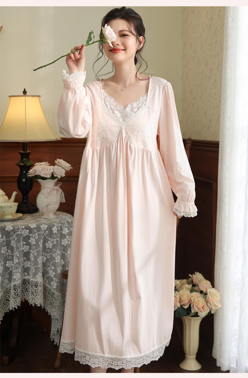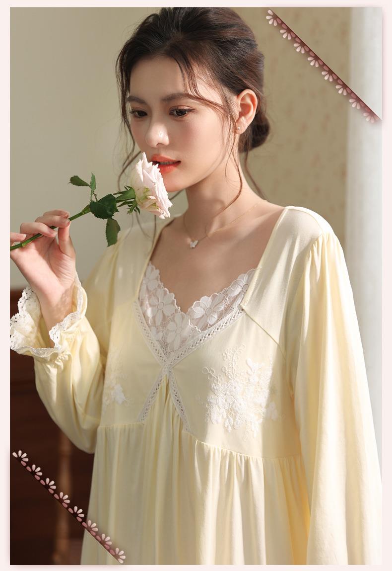 【轻奢宫廷·法式棉质睡裙】2026春季宽松大码长款法式绣花舒适睡衣带胸垫可外穿家居服秋