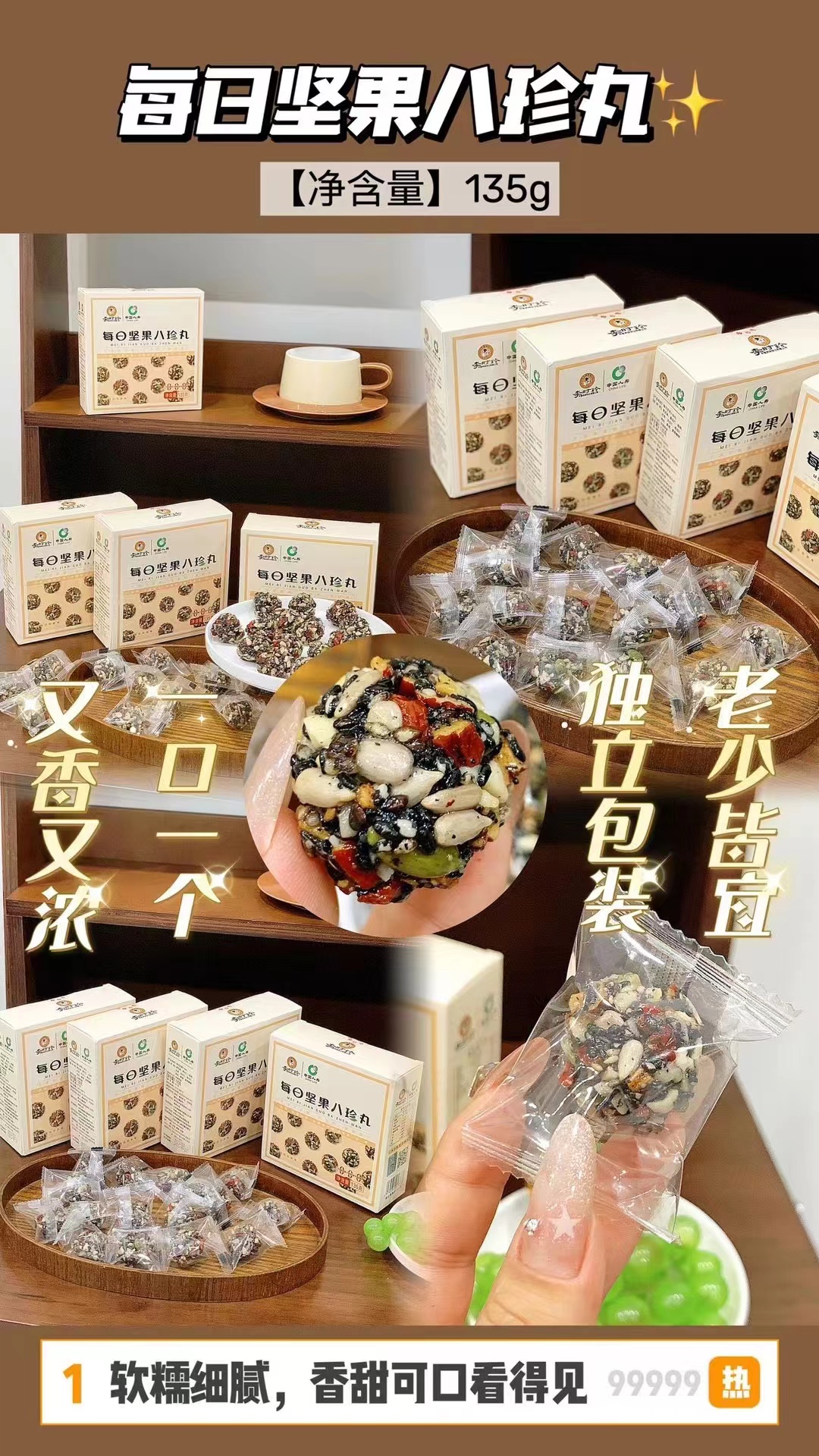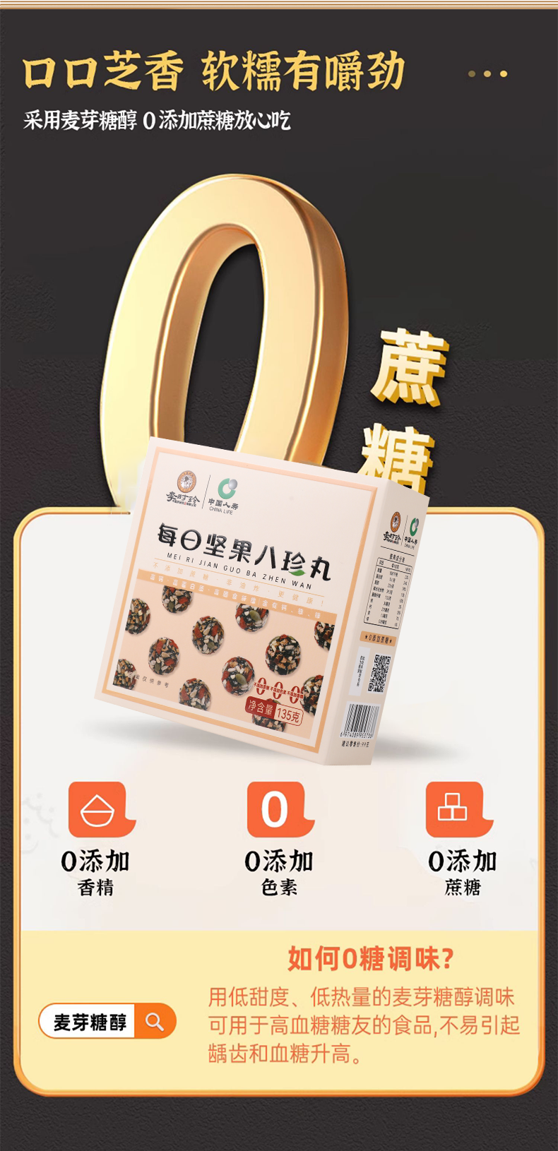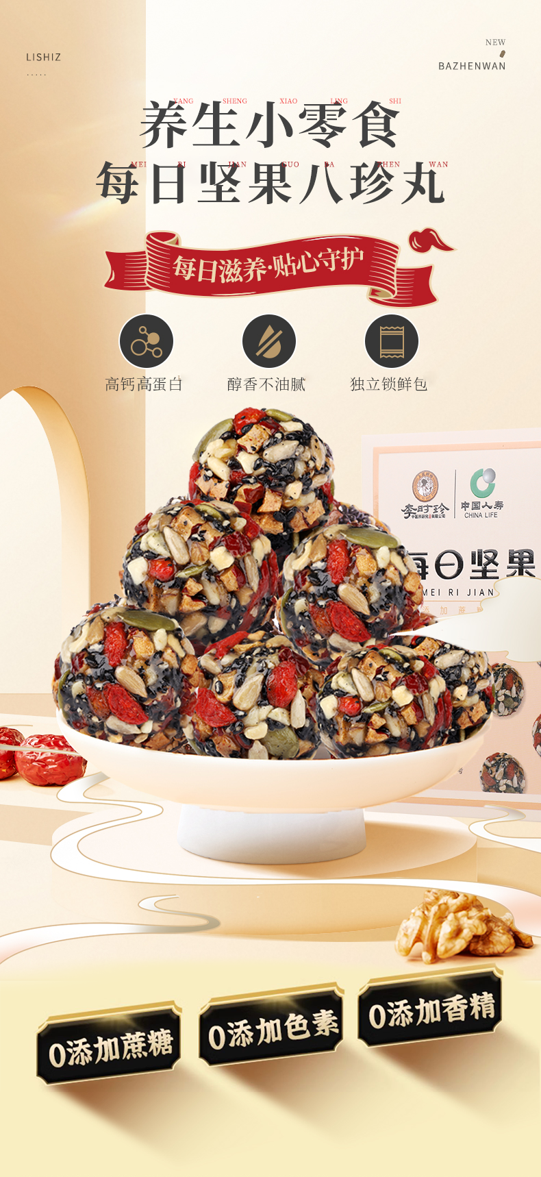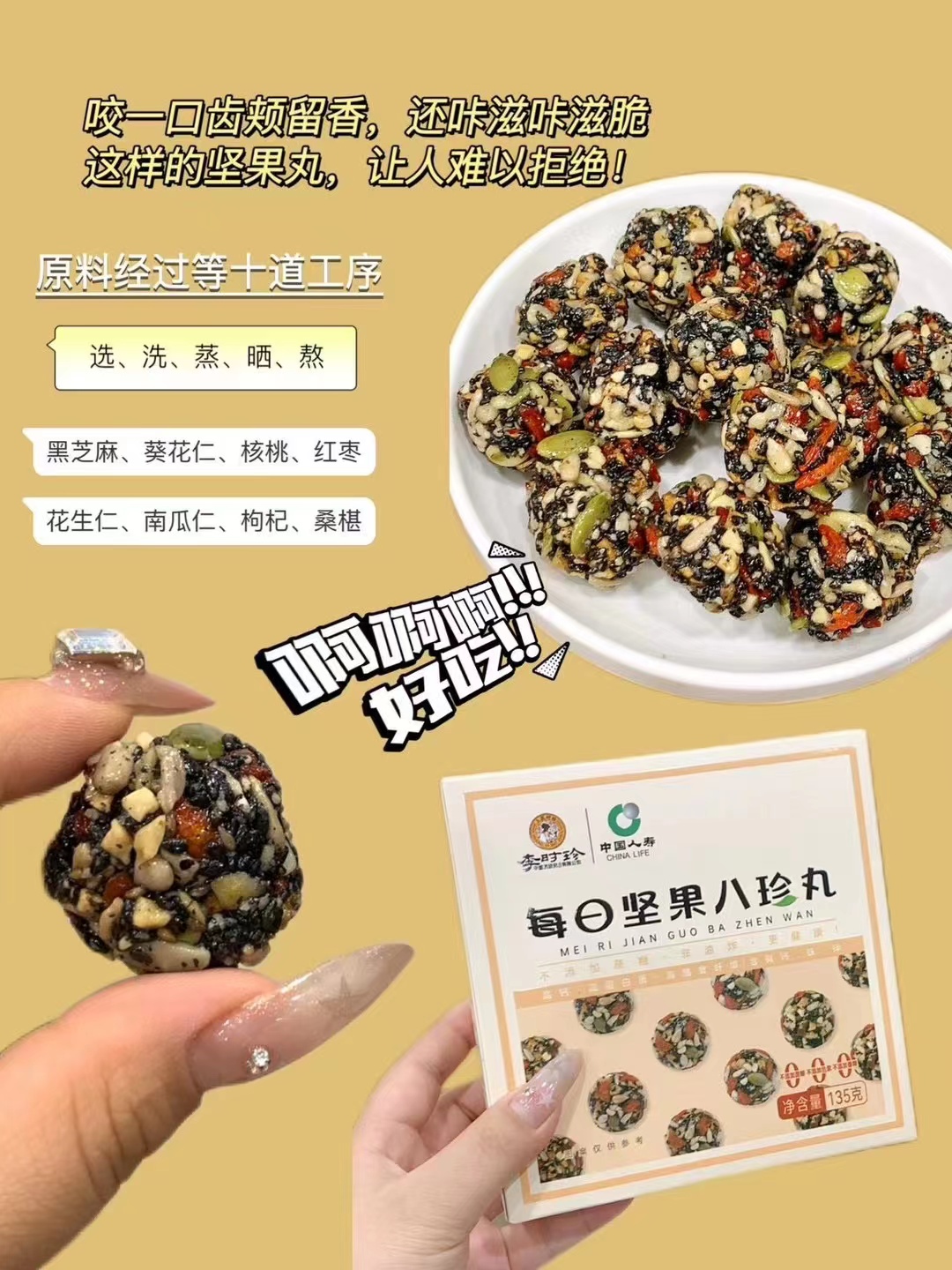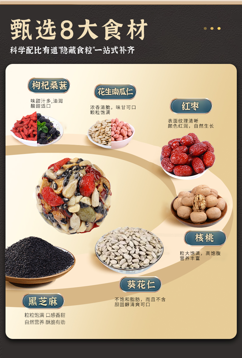 李时珍 每日坚果八珍丸135g黑芝麻葵花仁核桃红枣花生仁南瓜仁枸杞桑葚