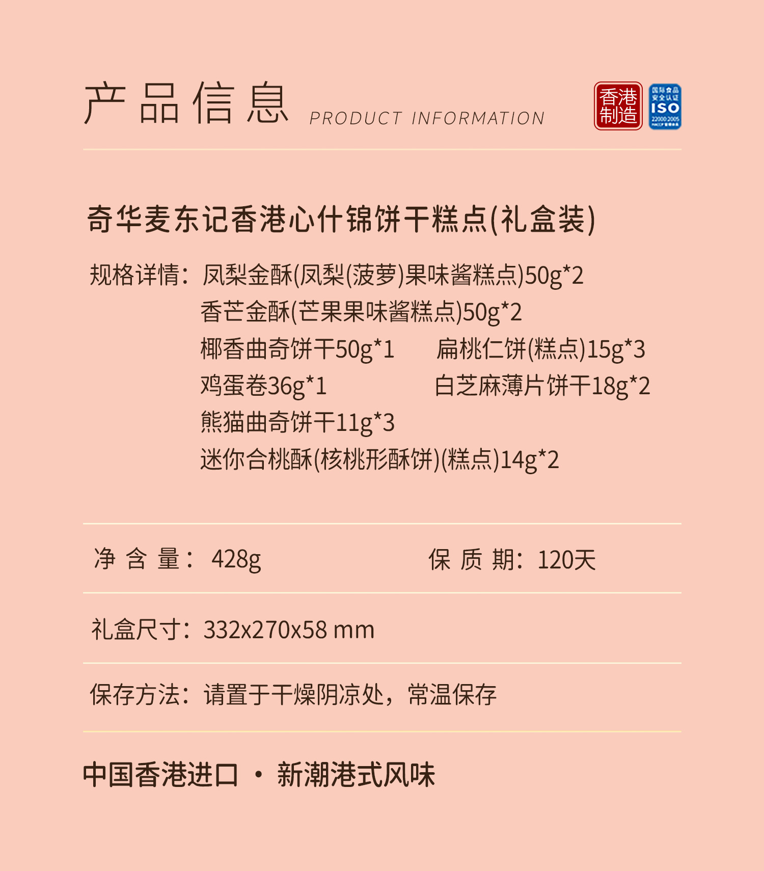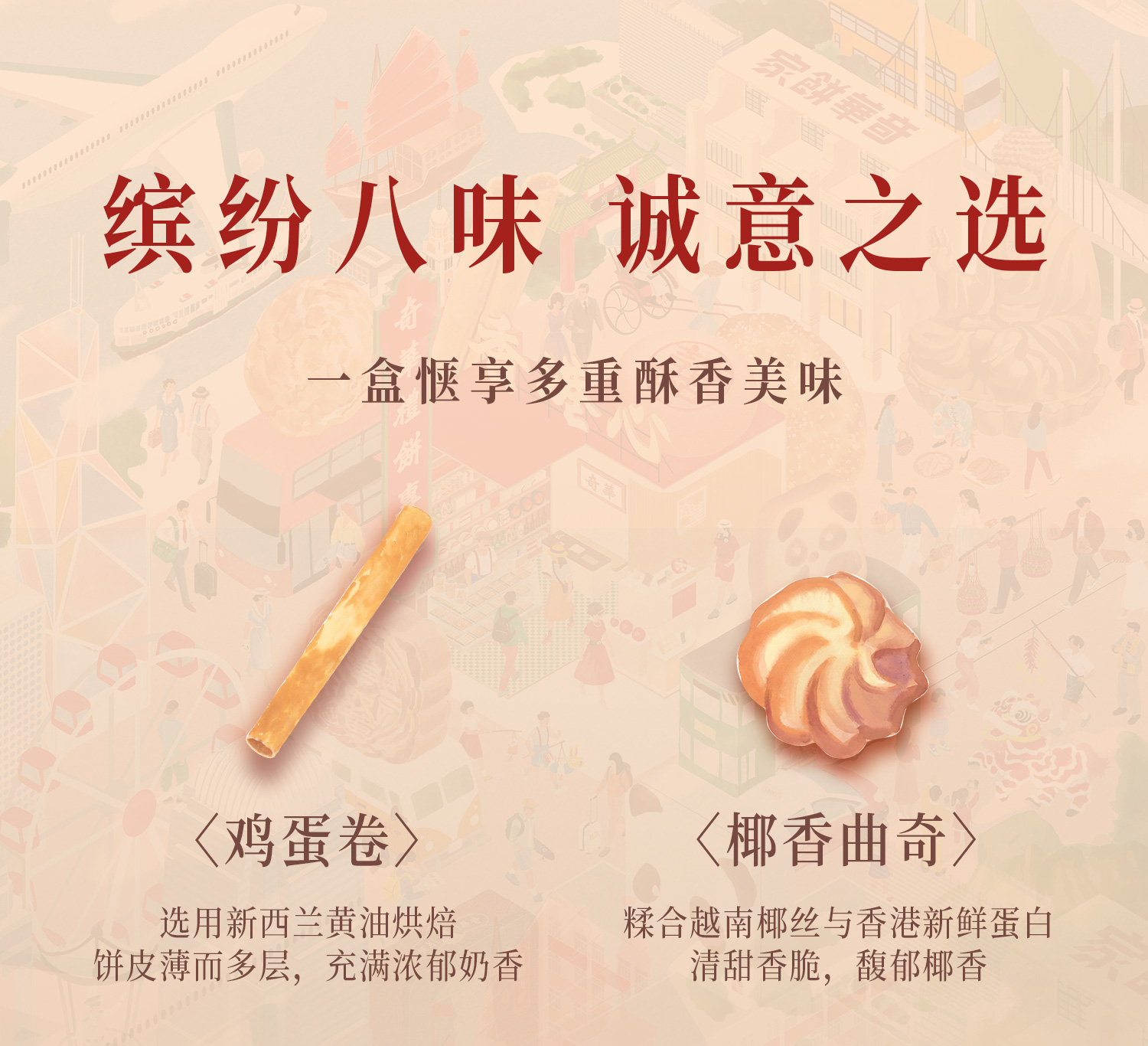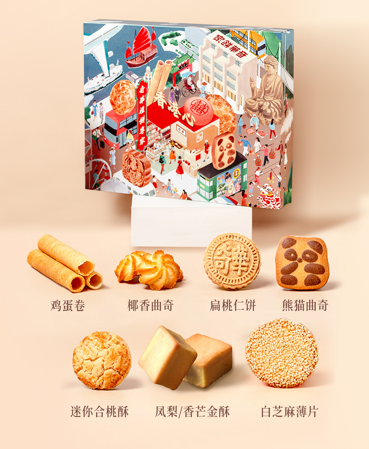 【麦东记香港心什锦饼干糕点礼盒】迷你合桃酥/凤梨金酥/香芒金酥/企鹅曲奇饼/鸡蛋卷芝麻饼节日伴手礼