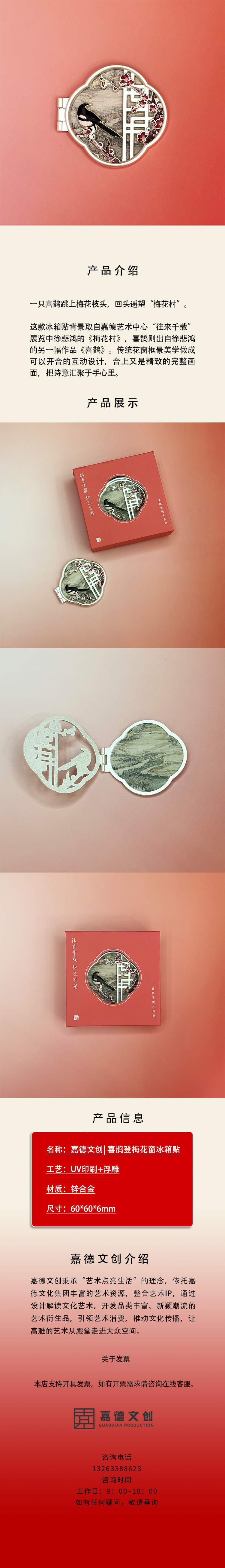 嘉德文创 | 往来千载喜鹊登梅花窗冰箱贴《梅花村》