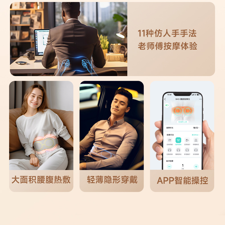 SKG按摩腰带K5系列2代大面积热敷 心选到家