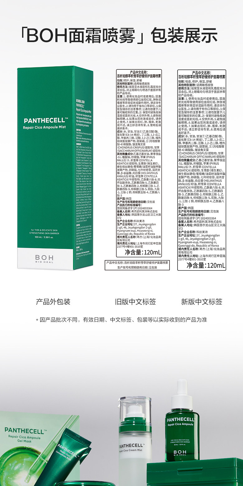BOH 百析珀 醇萃积雪草舒缓修护面霜喷雾 120ml