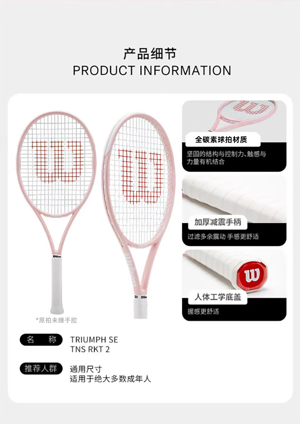 威尔胜(Wilson)樱花粉薰全碳素一体大拍面高颜值网球拍 WR146110U2