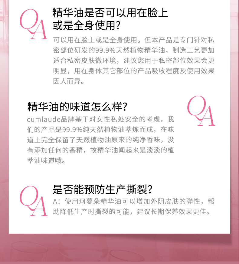Cumlaude珂蔓朵 私密舒适 外养内护(粉嫩霜+精华油50ml+玻尿酸凝胶*1盒)