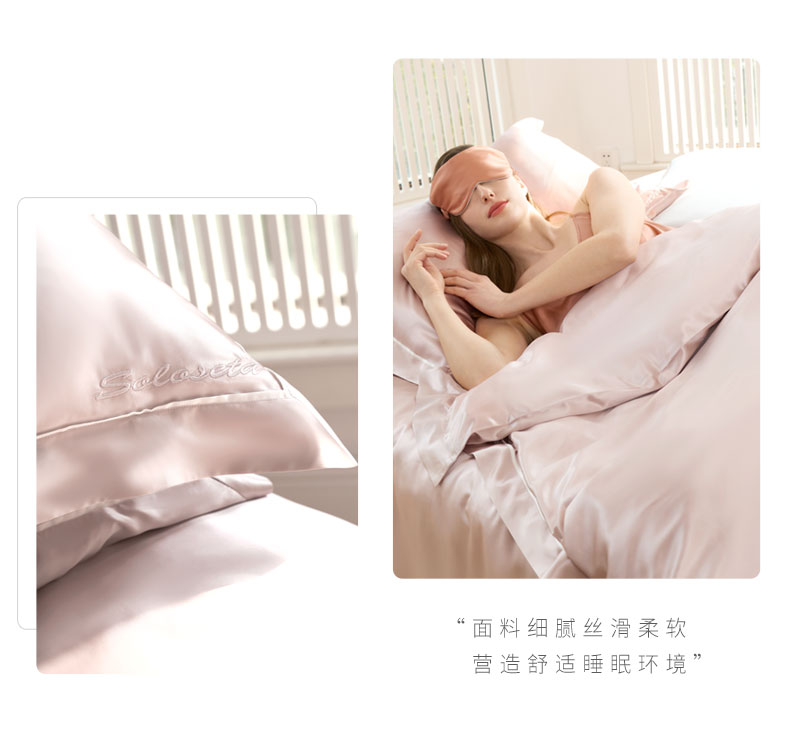 Solo seta真丝四件套床上用品22姆米桑蚕丝被套床单纯色床品1.8米