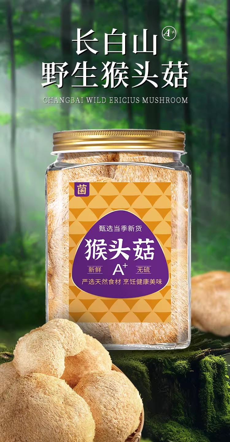 在菌屋 东北精品猴头菇150g/罐 绒毛鲜亮艳黄 泡发肉厚口感好