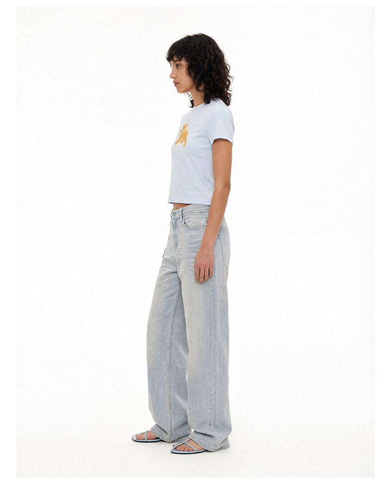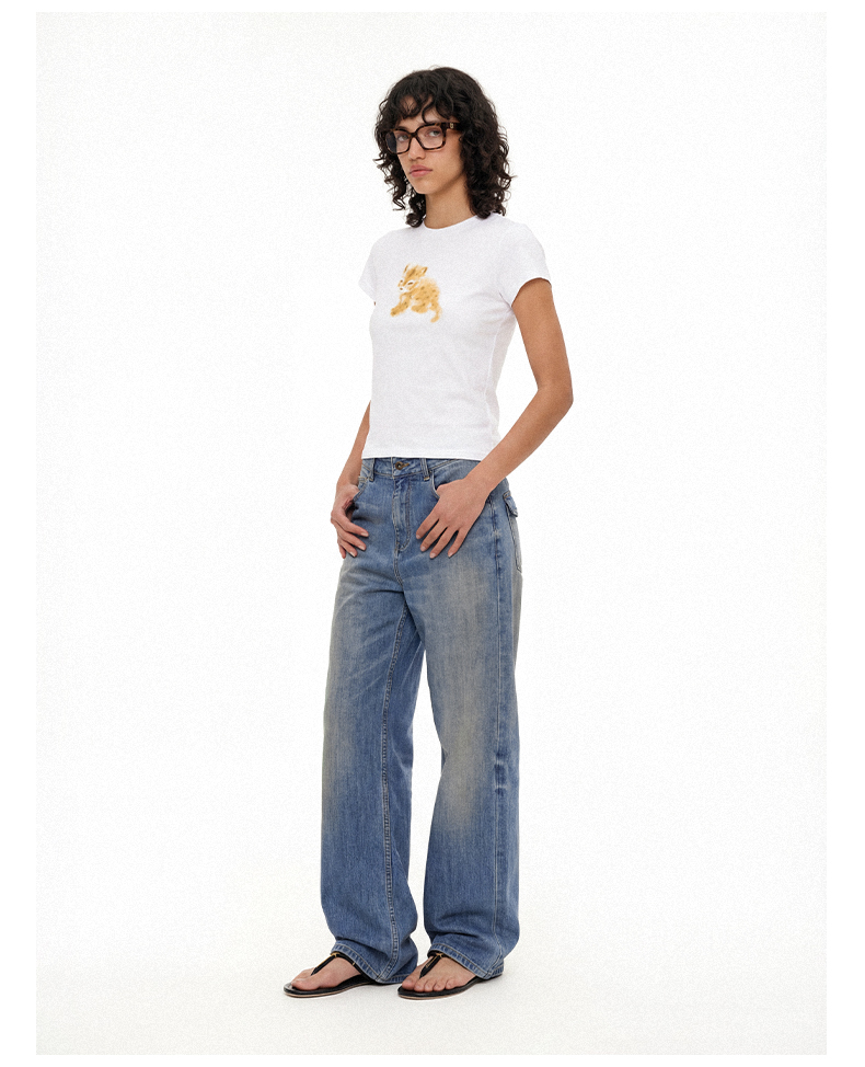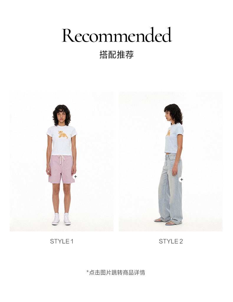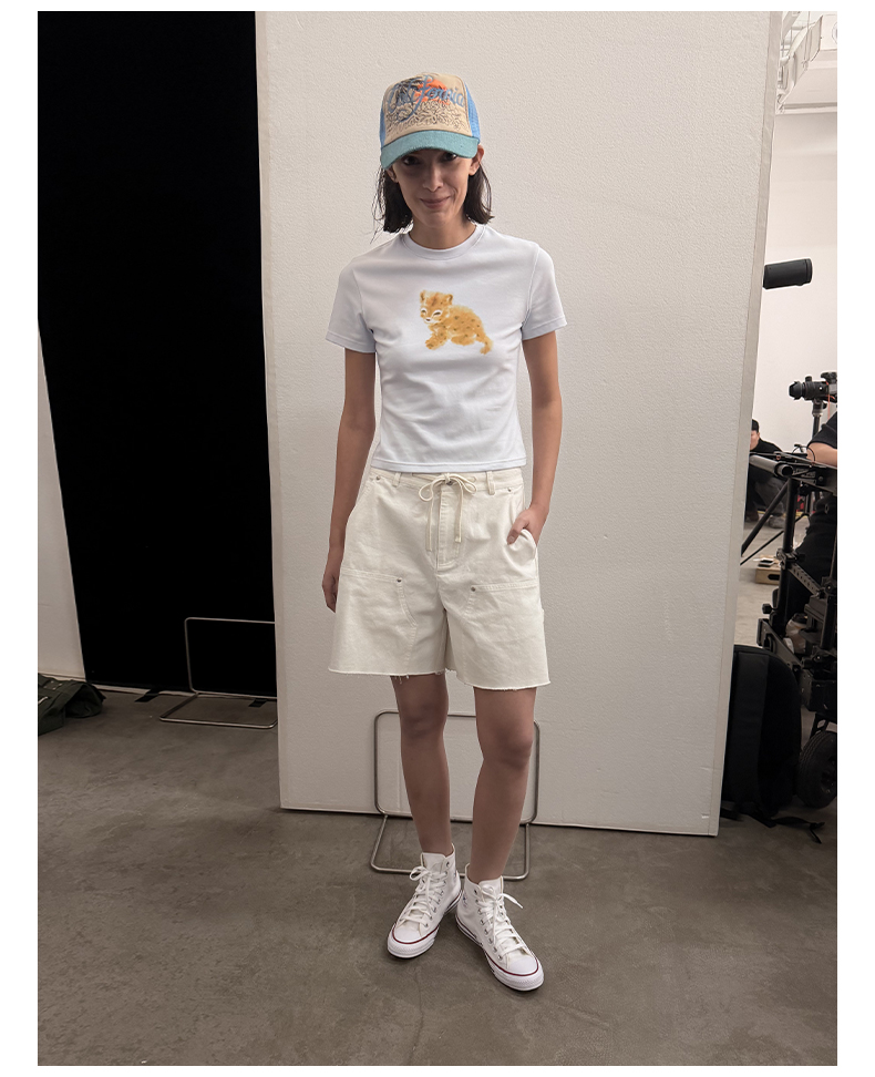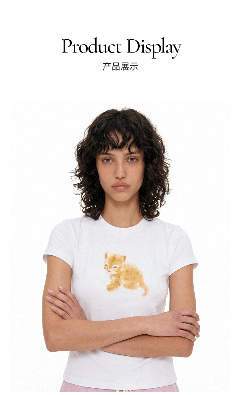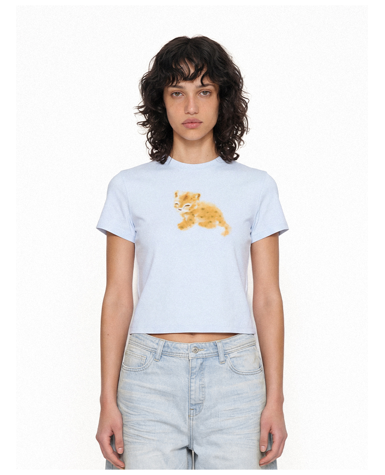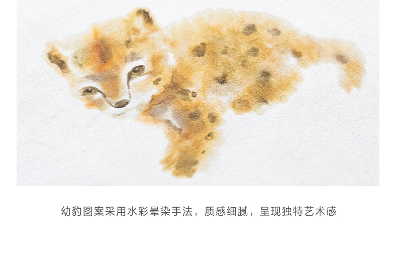 NUTH俏皮手绘豹子动物印花弹力修身薄款正肩短袖t恤女(预售/发货时间同步天猫)