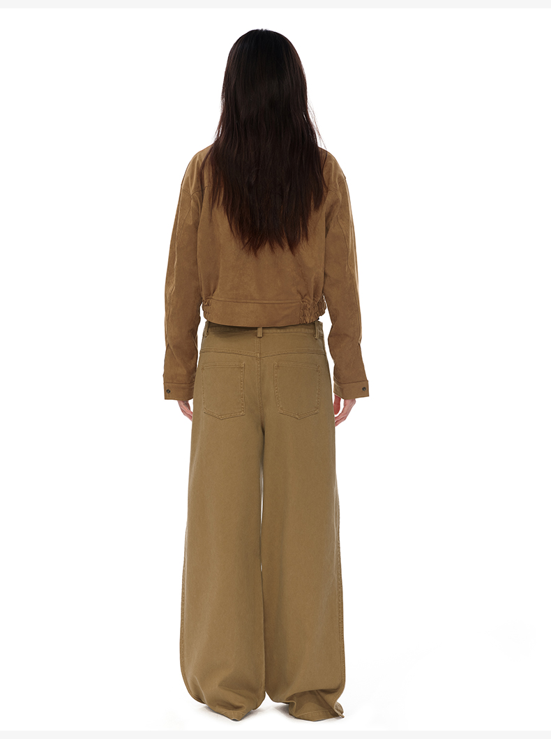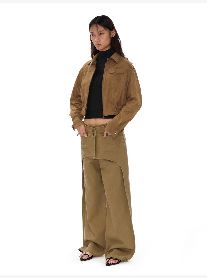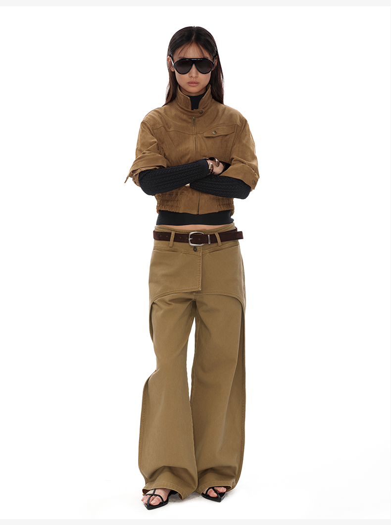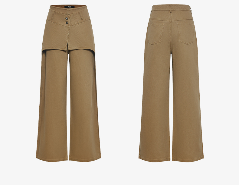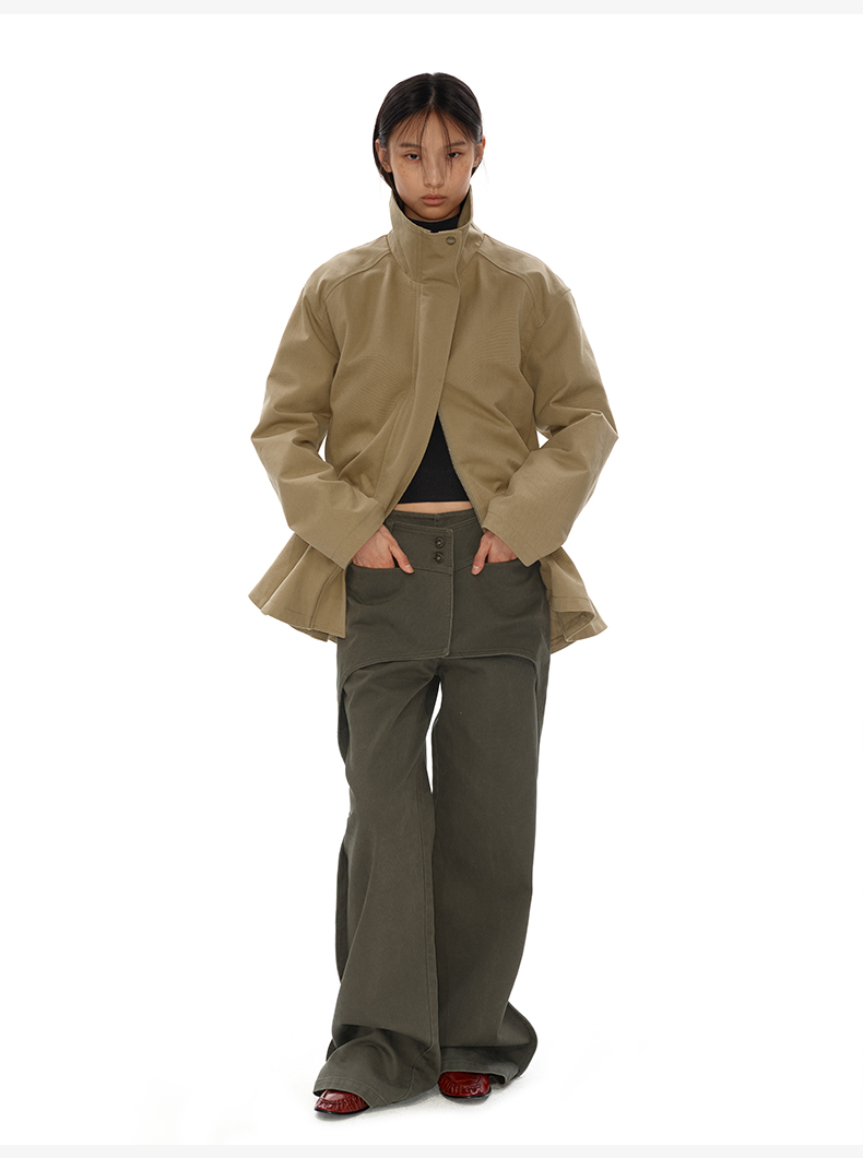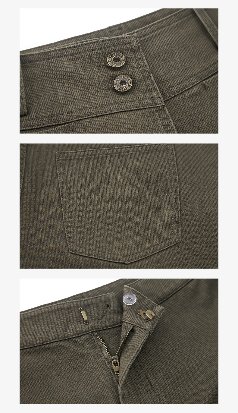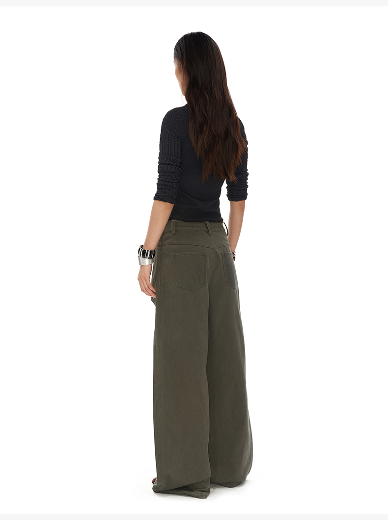 NUTH搭片假两件宽松直筒复古工装裤女秋冬 军绿色/卡其色洗