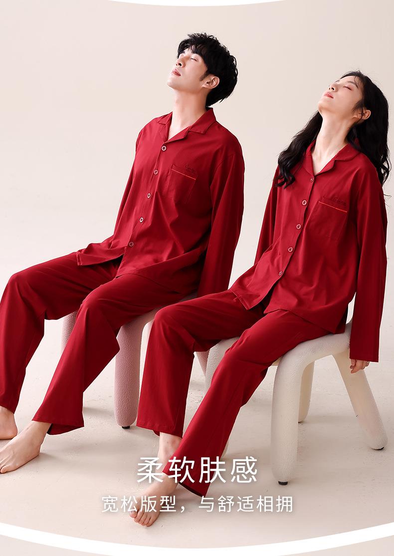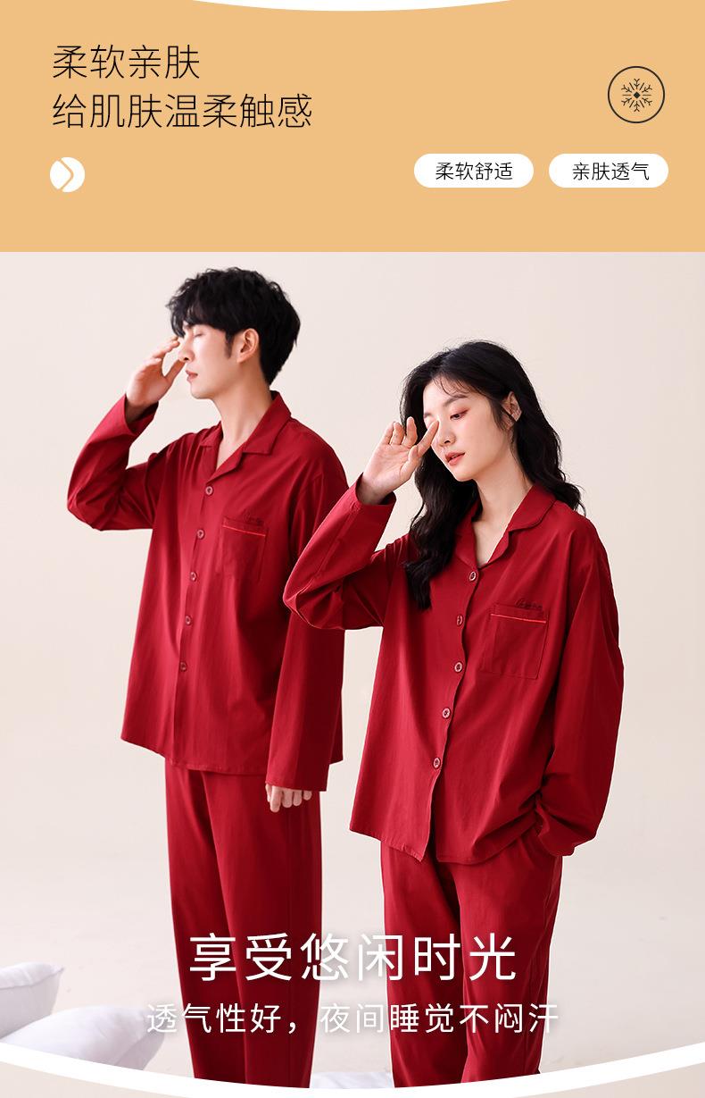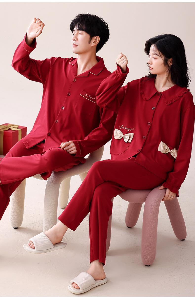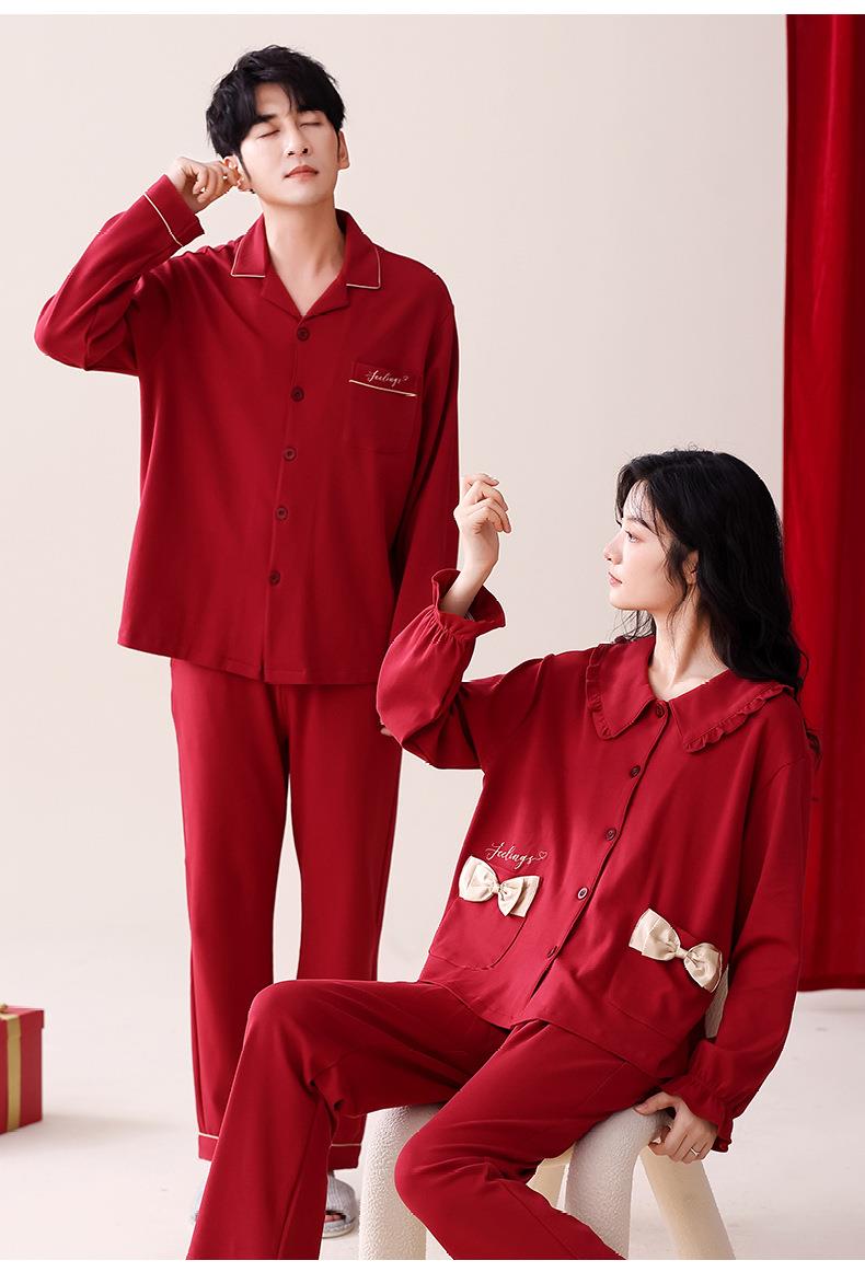 【本命年·婚礼·新婚睡衣】红色情侣睡衣秋冬纯棉长袖公主风新婚家居服秋天男女士结婚睡衣