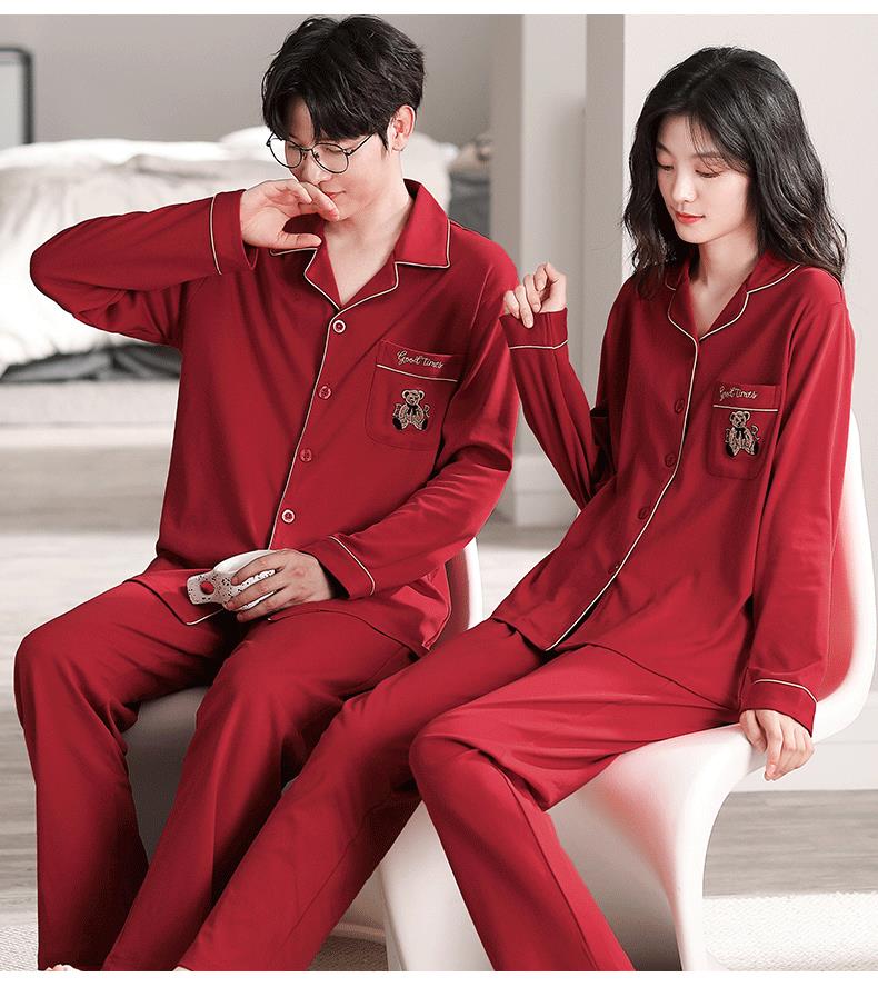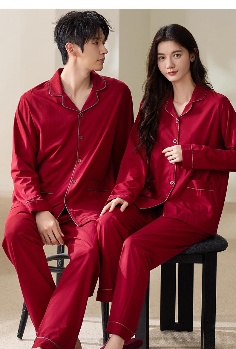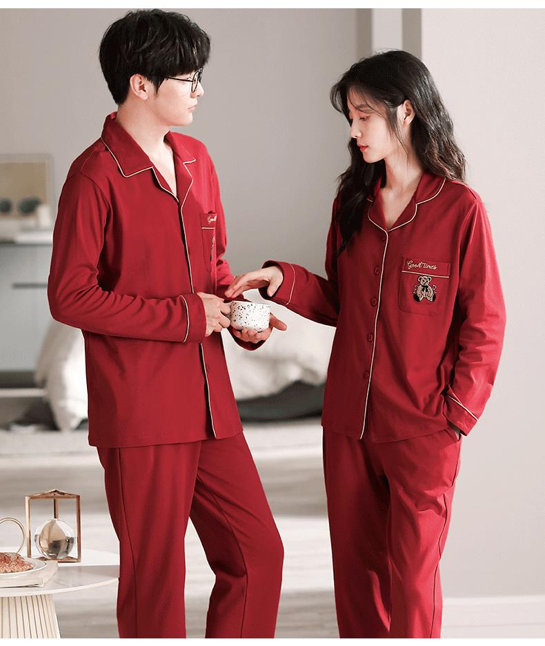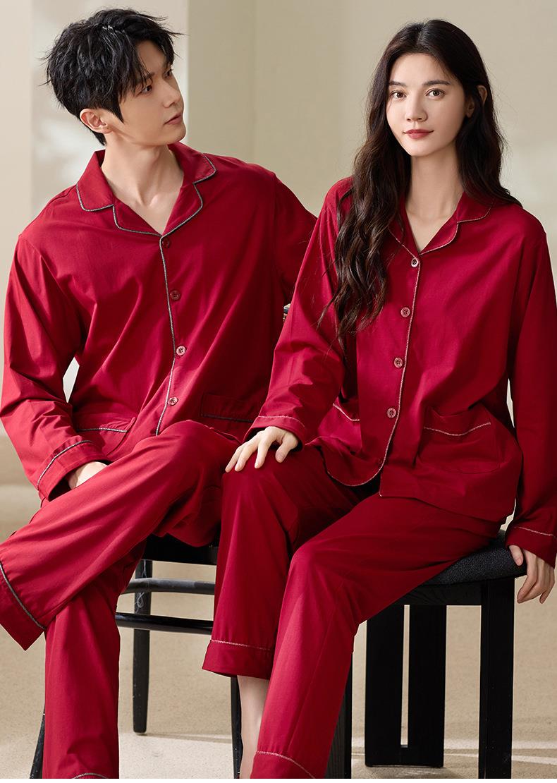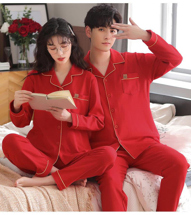 【本命年·婚礼·新婚睡衣】红色情侣睡衣秋冬纯棉长袖公主风新婚家居服秋天男女士结婚睡衣