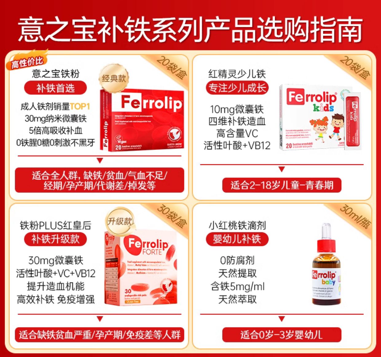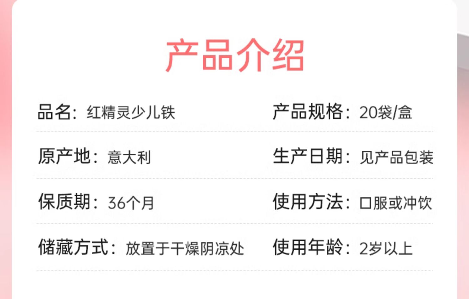 【团长专属】意之宝红精灵补铁儿童婴儿贫血宝宝eisen铁元素补血补铁贫血儿童20袋/盒