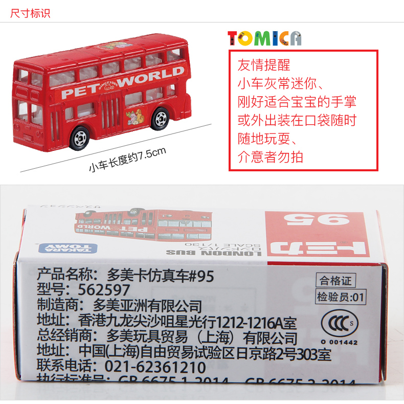 多美卡 仿真车 #95 伦敦巴士 车长约7.5cm