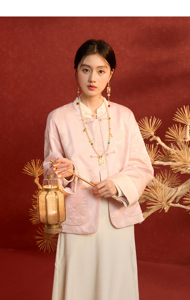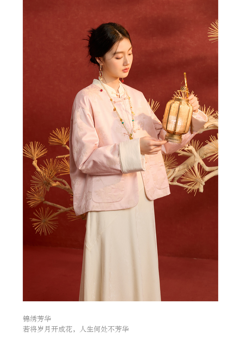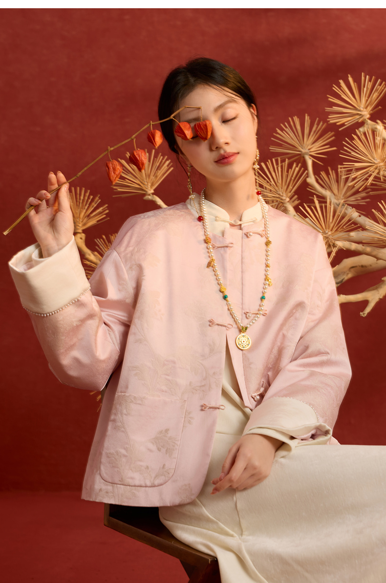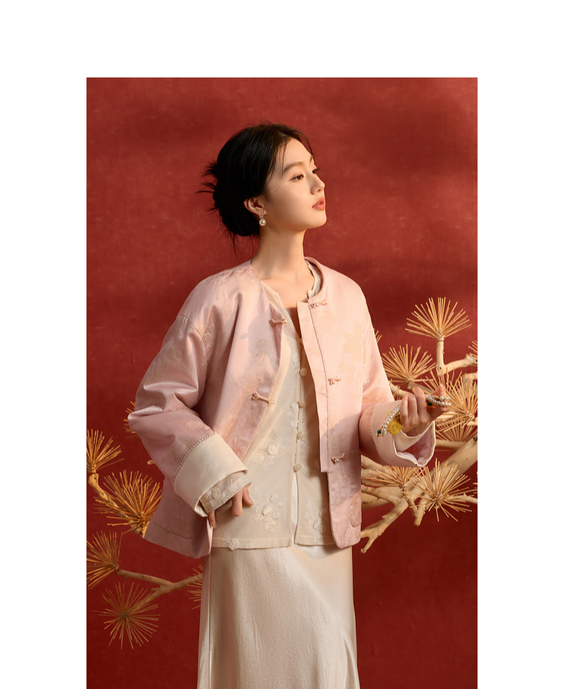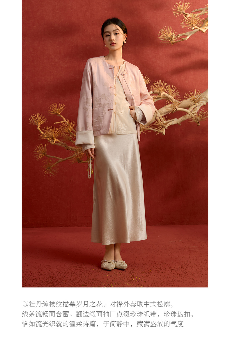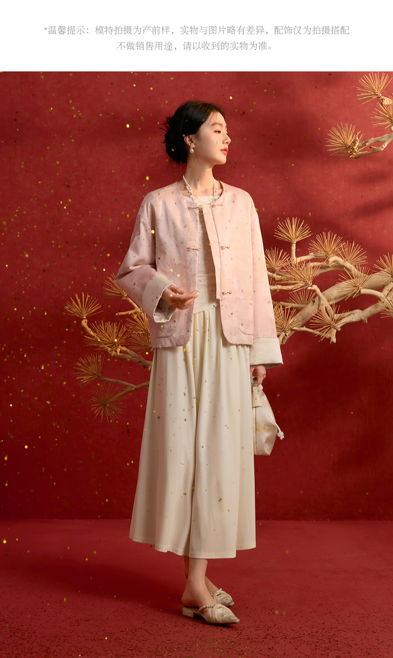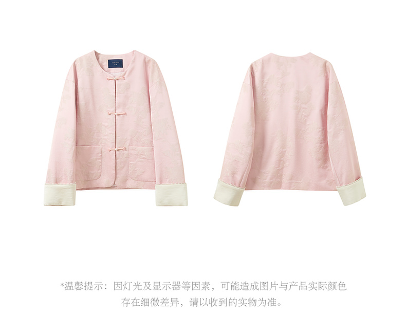 三彩【锦绣芳华】2026春季新款保暖棉衣外套提花圆领盘扣短款C