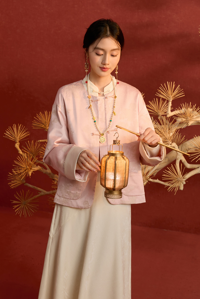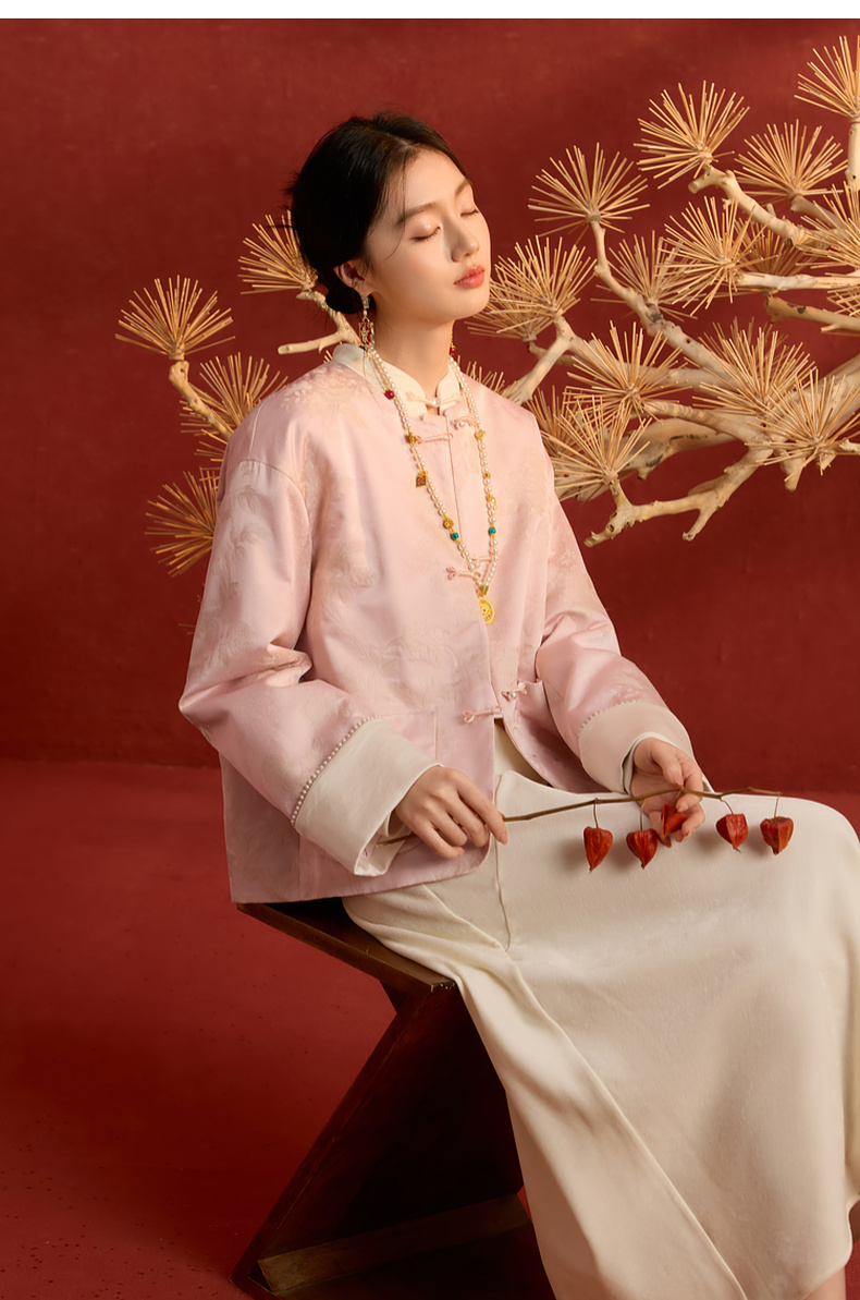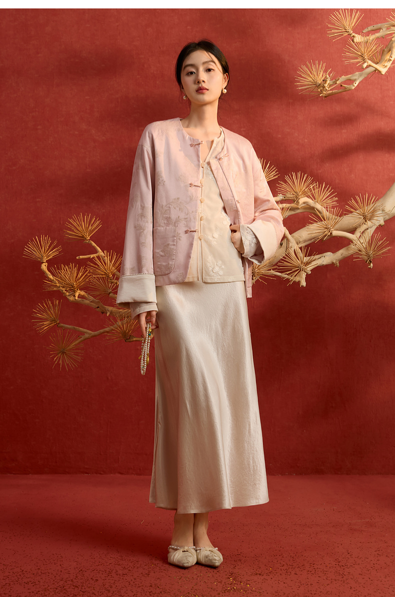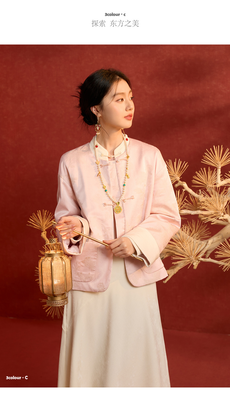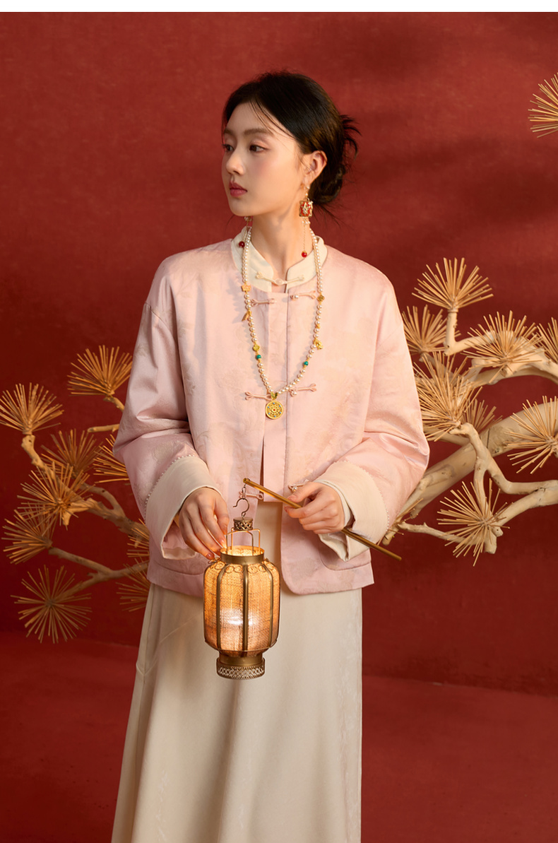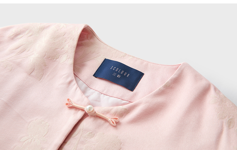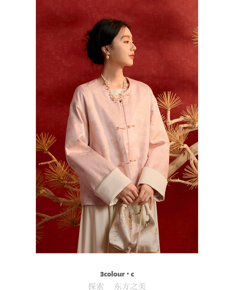 三彩【锦绣芳华】2026春季新款保暖棉衣外套提花圆领盘扣短款C