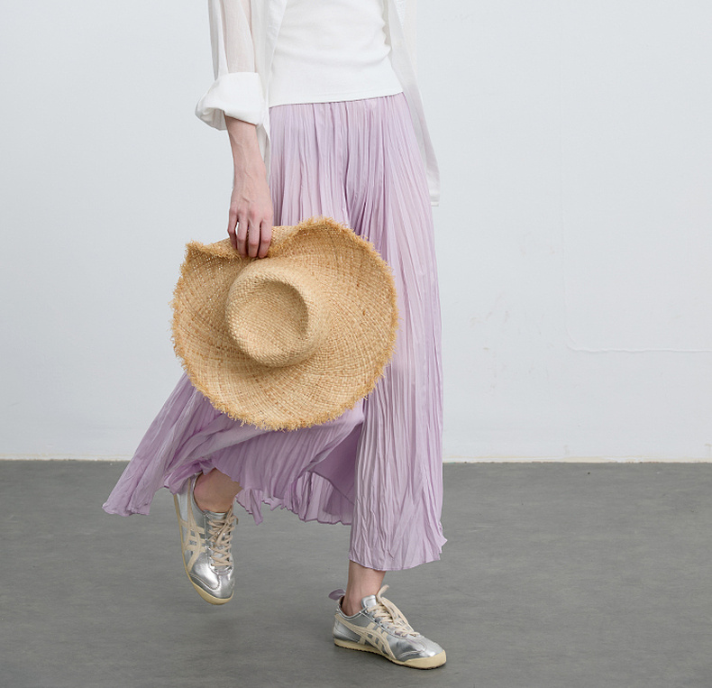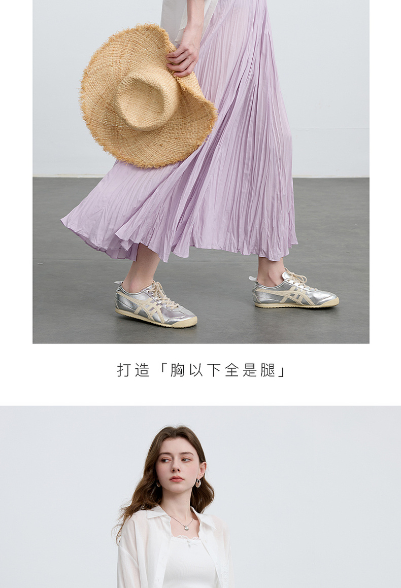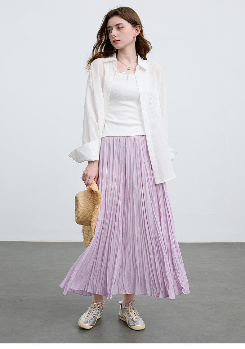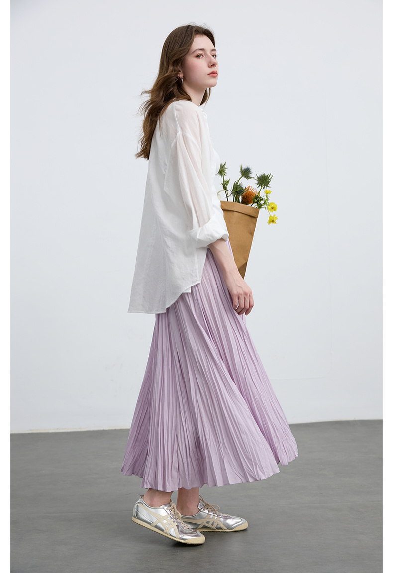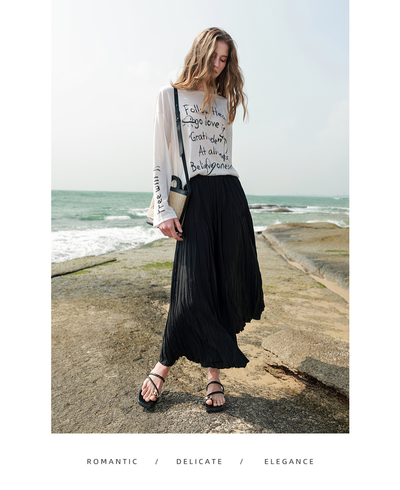 三彩2025春季新款肌理感压褶半身裙松紧高腰A字裙浪漫长裙M
