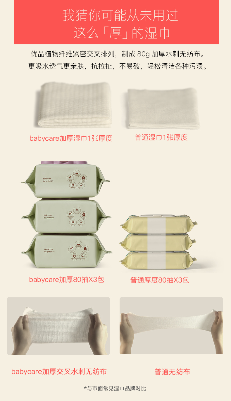 babycare婴儿湿巾手口专用新生儿加厚宝宝湿纸巾80抽带盖*3包