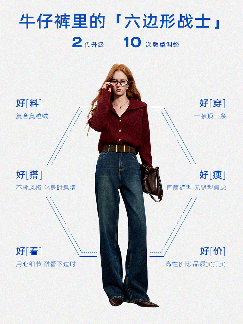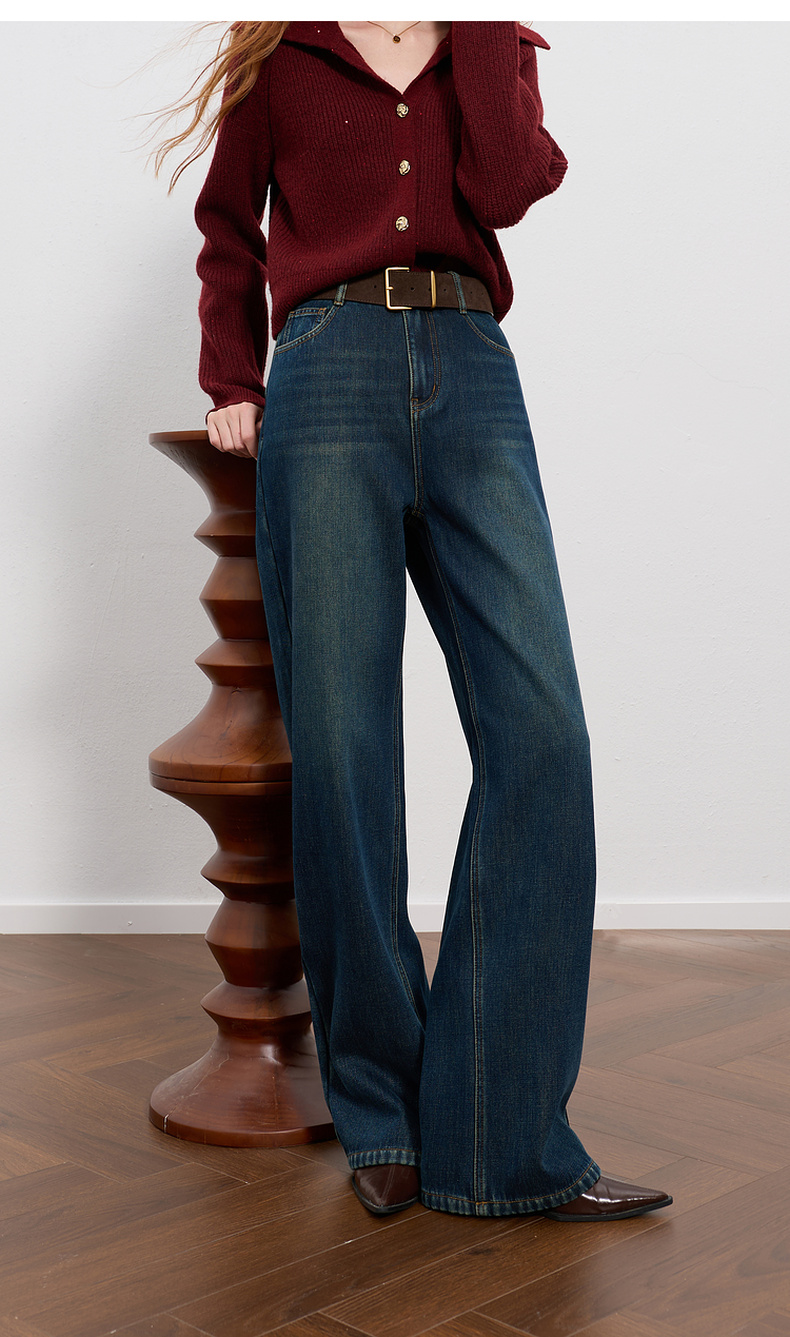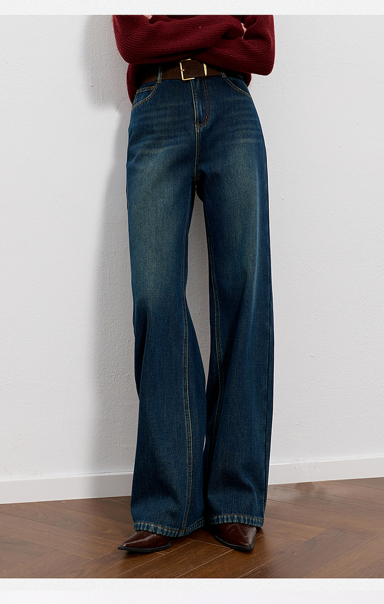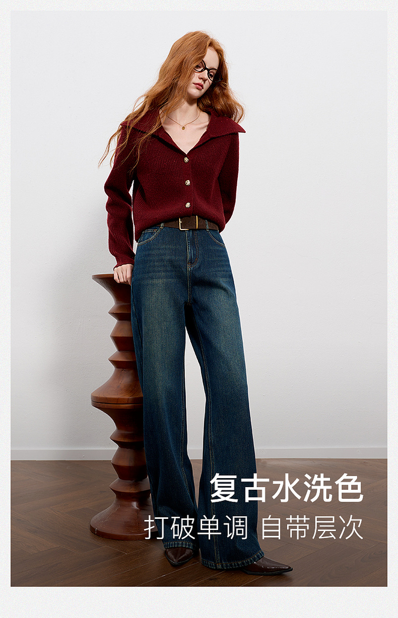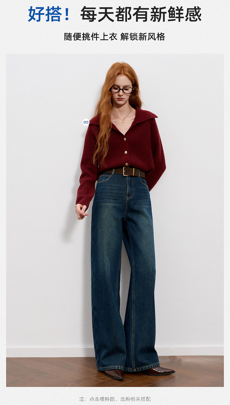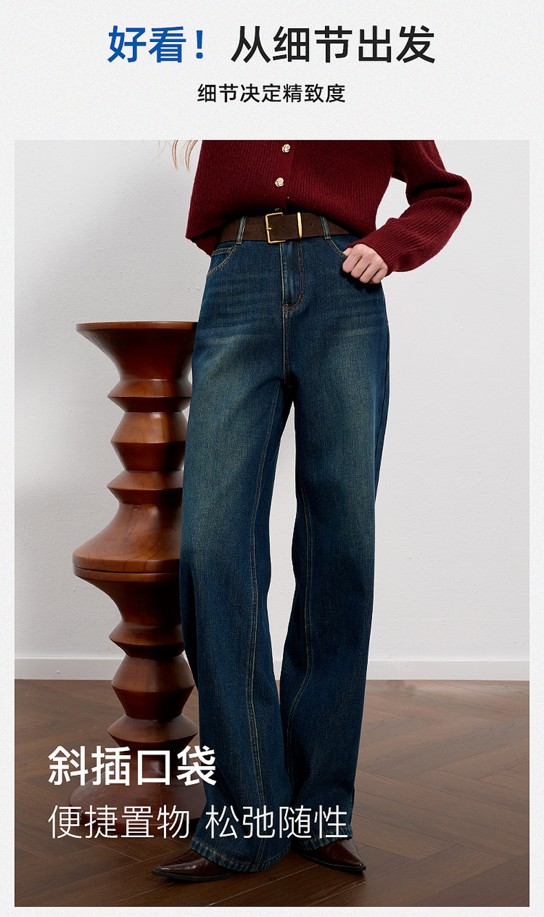 【奥利绒】三彩2025冬季新款牛仔裤休闲直筒裤宽松长裤简约Z