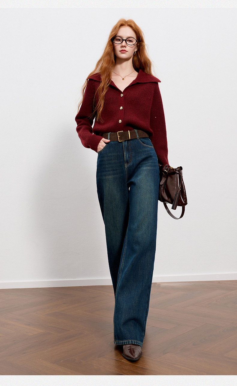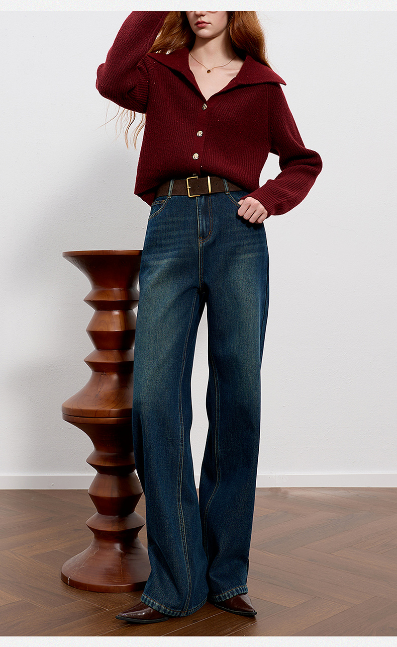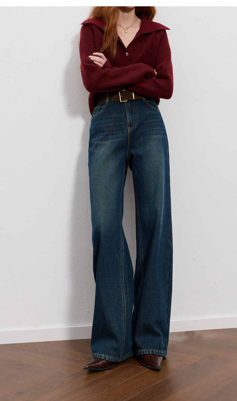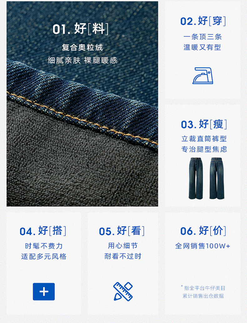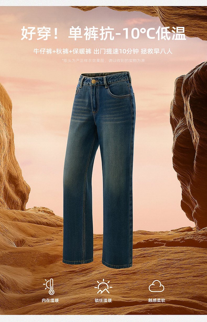 【奥利绒】三彩2025冬季新款牛仔裤休闲直筒裤宽松长裤简约Z