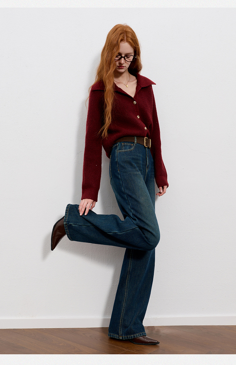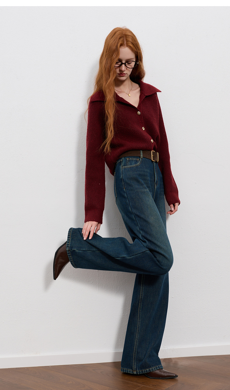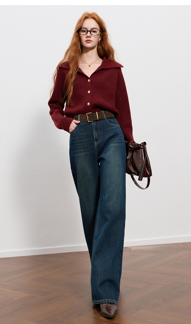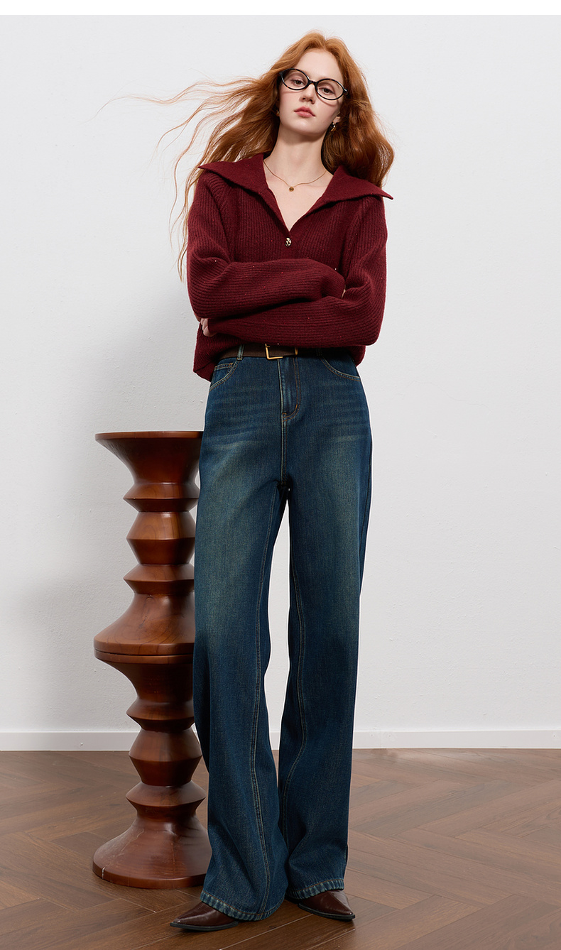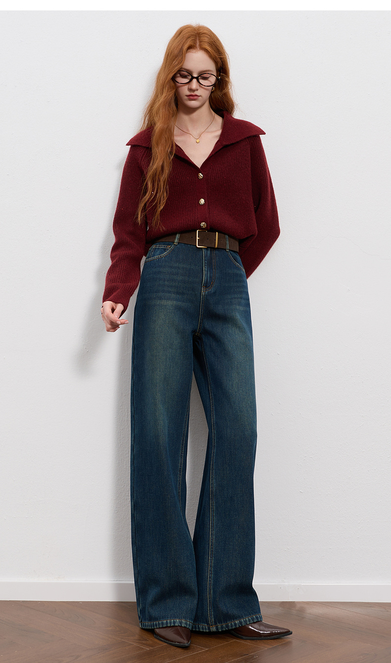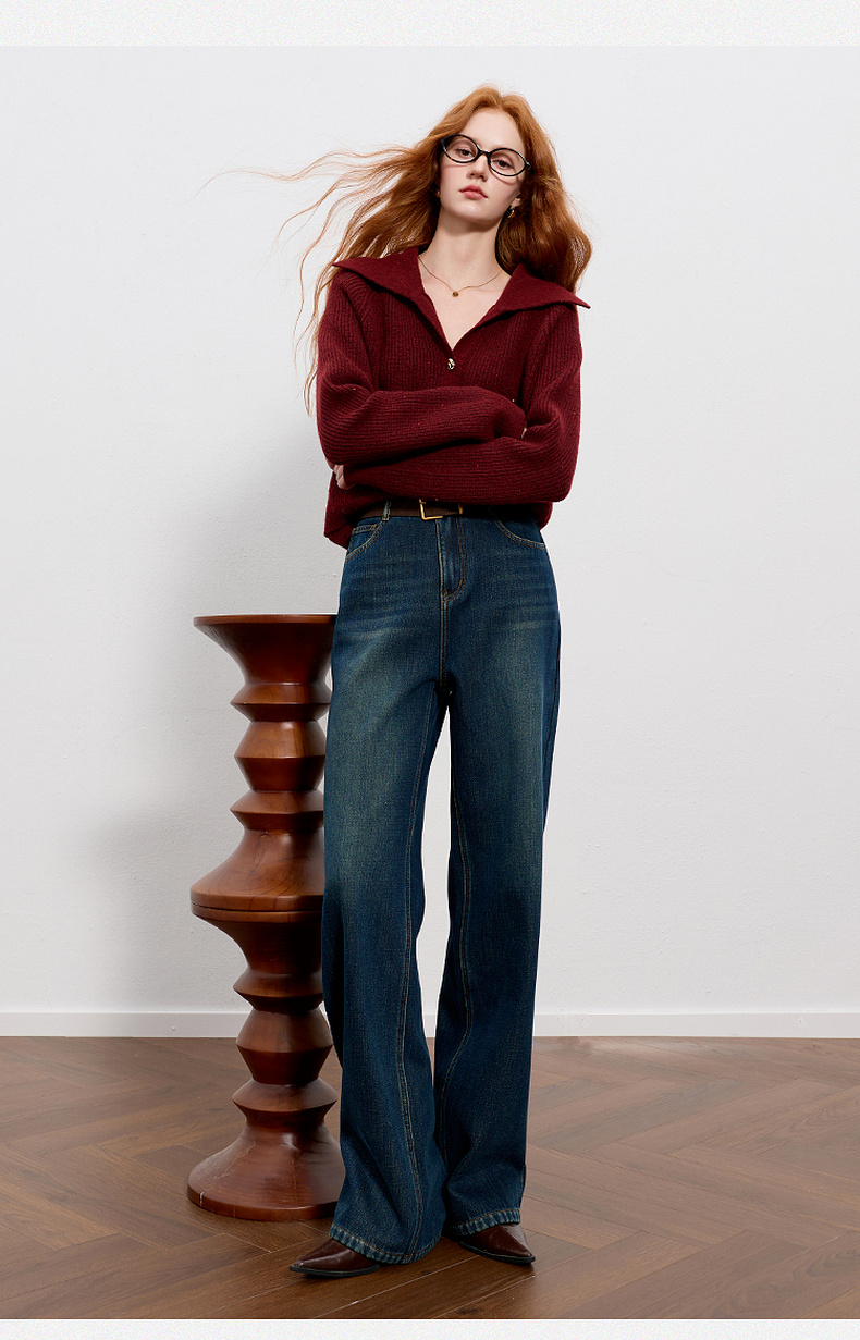 【奥利绒】三彩2025冬季新款牛仔裤休闲直筒裤宽松长裤简约Z
