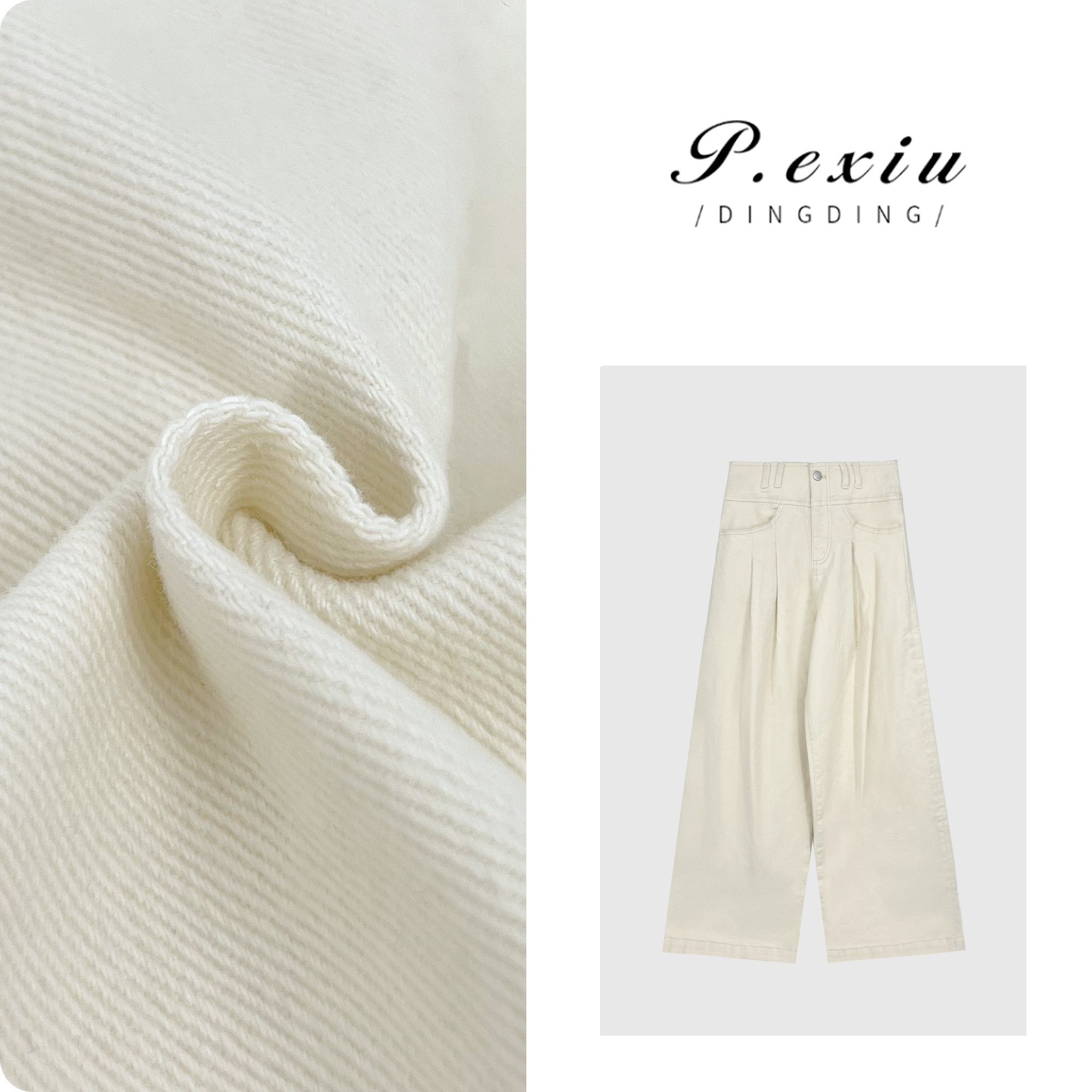 PanYiXiu/潘依绣 Xiao Haute Couture | 时髦精双口袋100%棉白牛仔裤 D6061