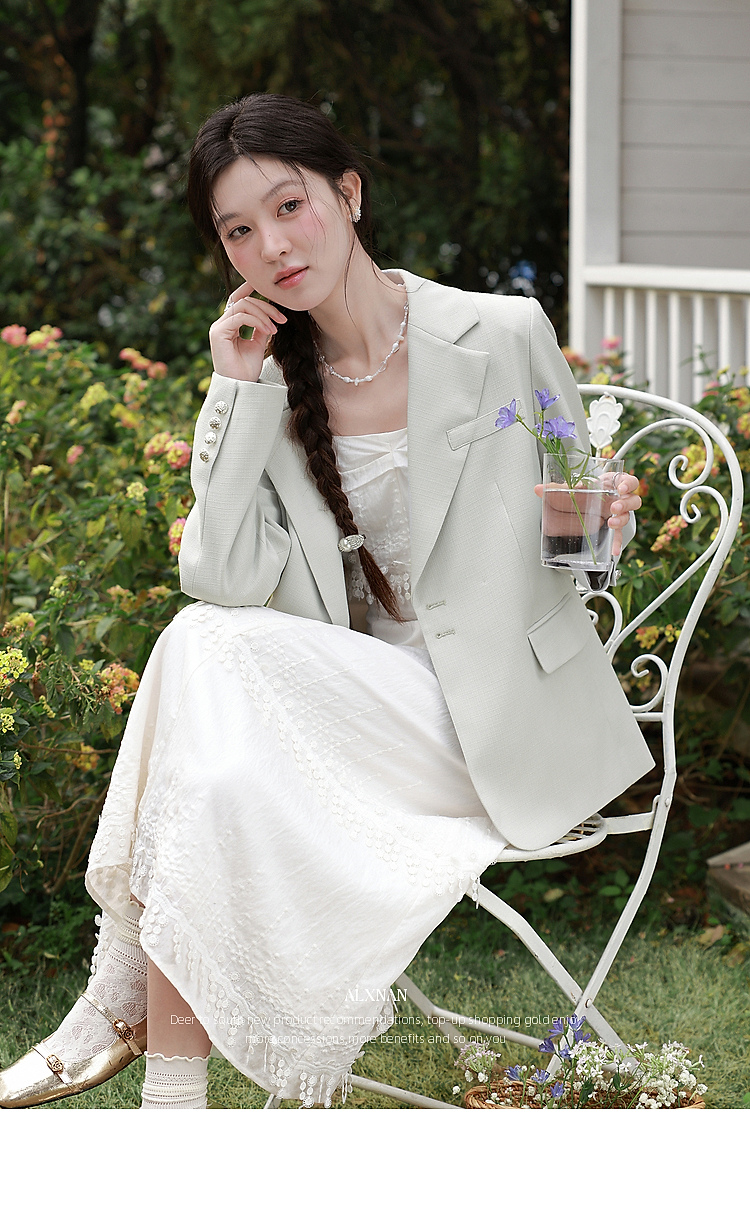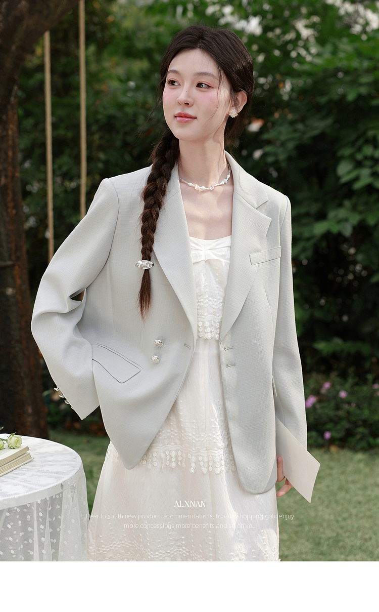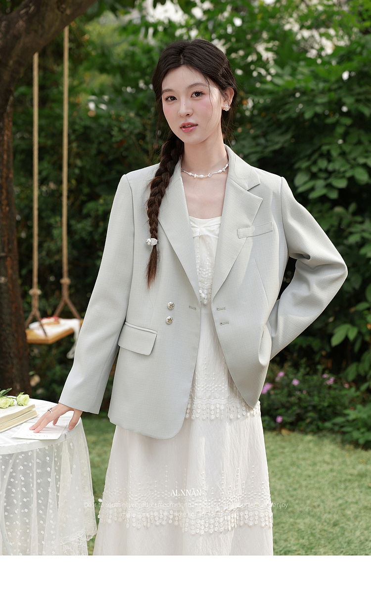 鹿向南「青雾松间」绿色通勤休闲西装外套女装春季高级感西服上衣