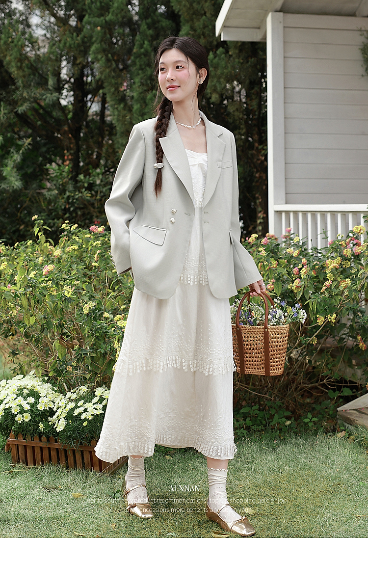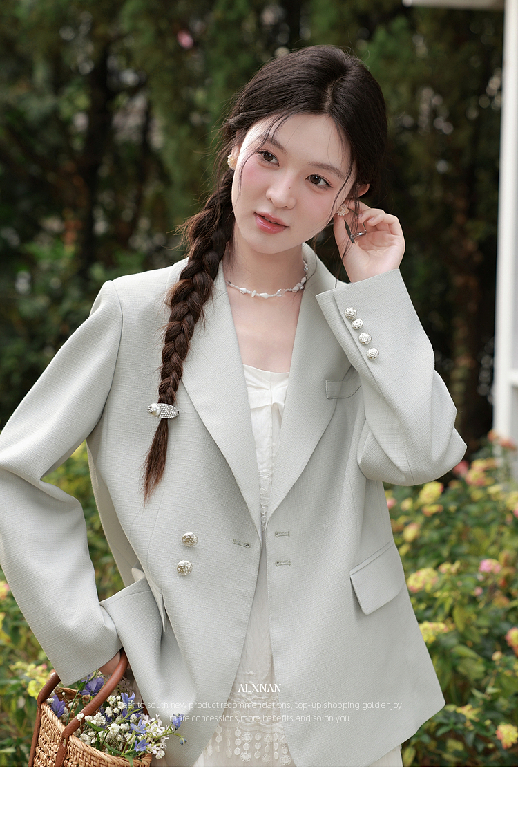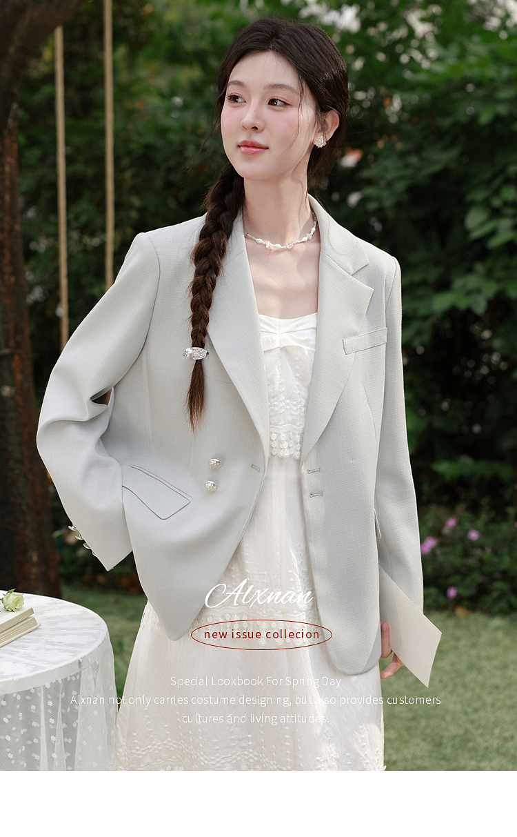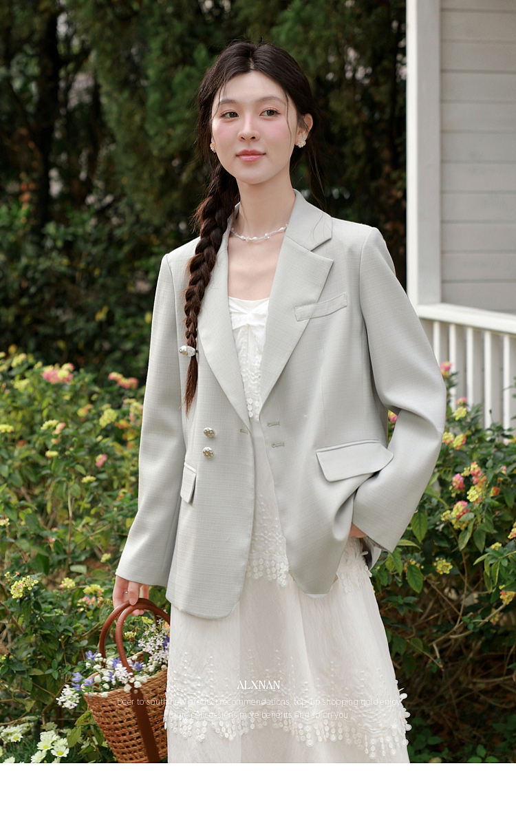 鹿向南「青雾松间」绿色通勤休闲西装外套女装春季高级感西服上衣