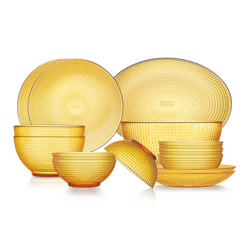 VISIONS 康宁琥珀色餐具家用厨房客厅水果盘欧式14件组VS-AMR14/KZCL