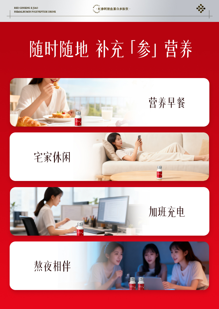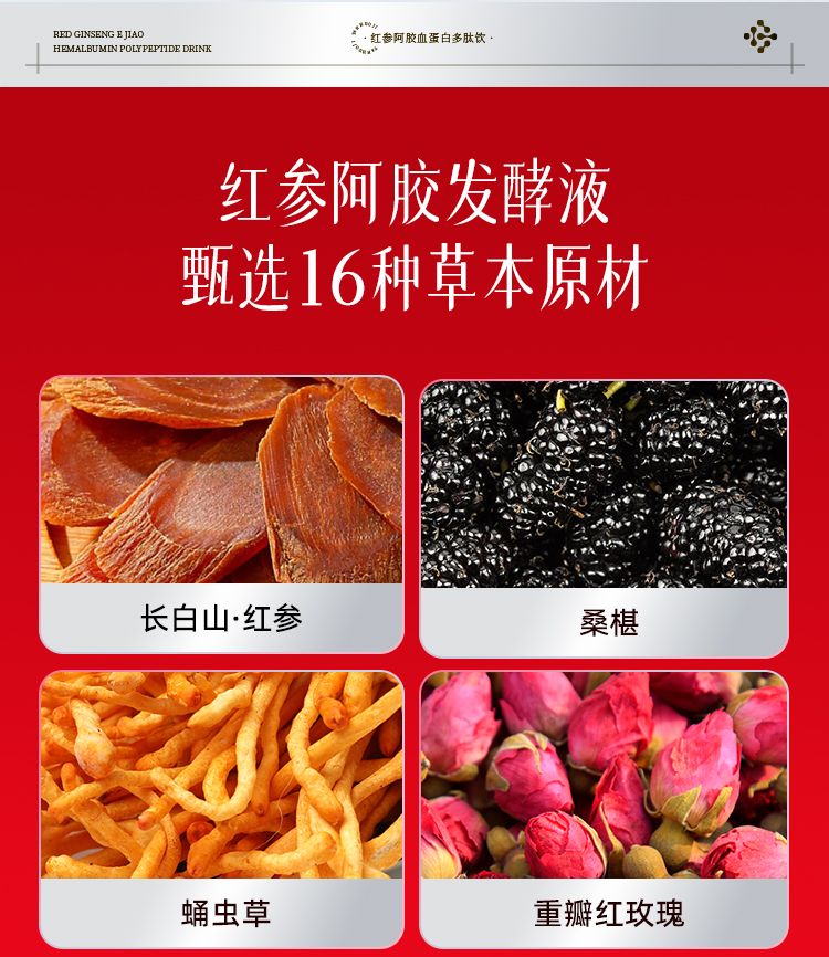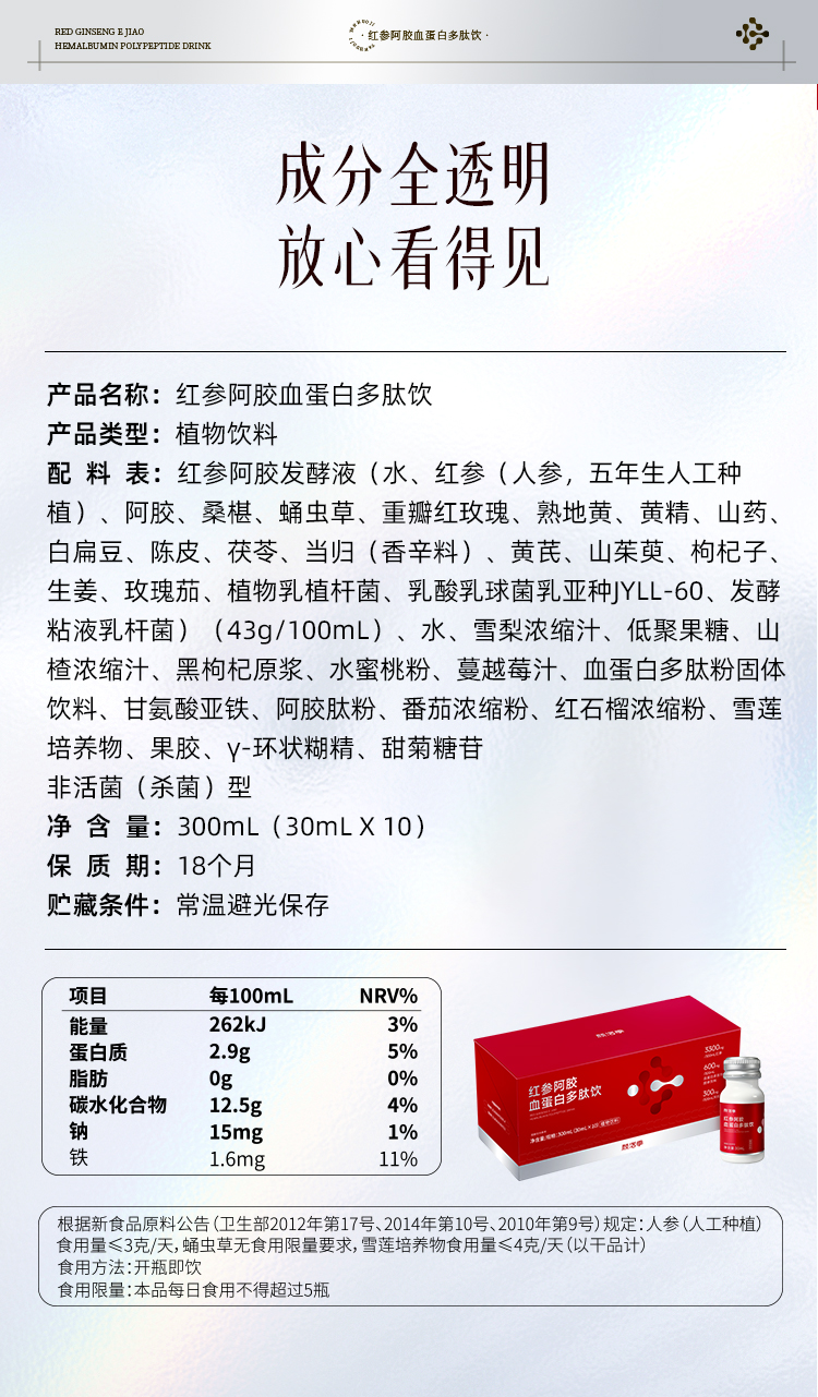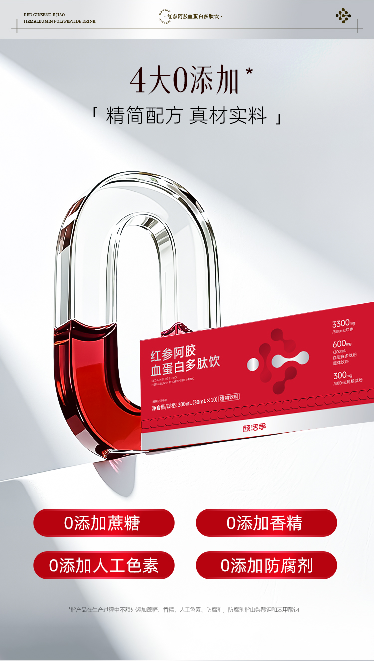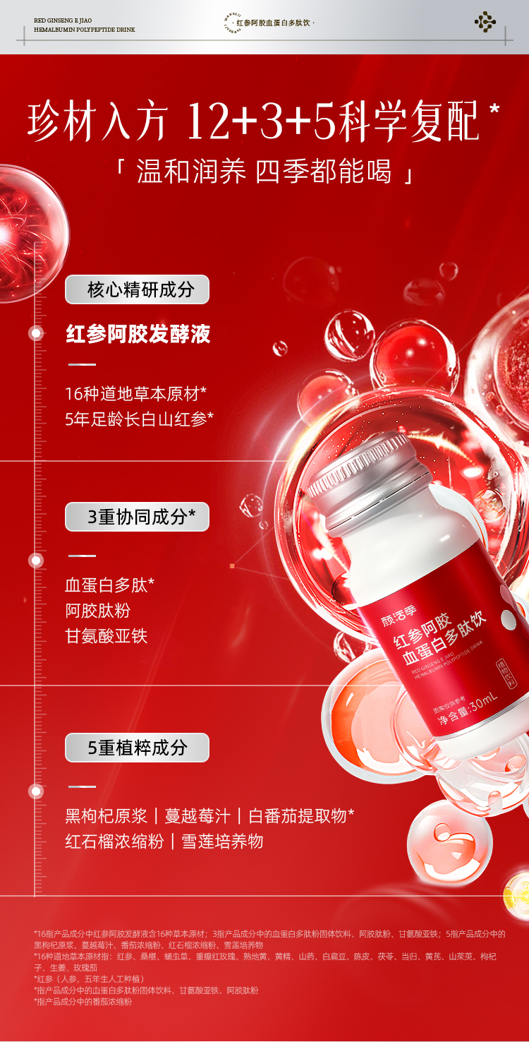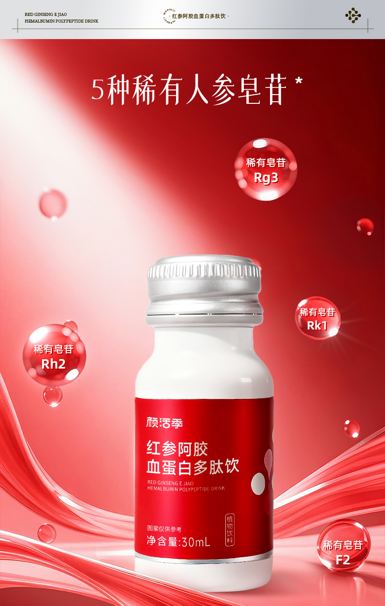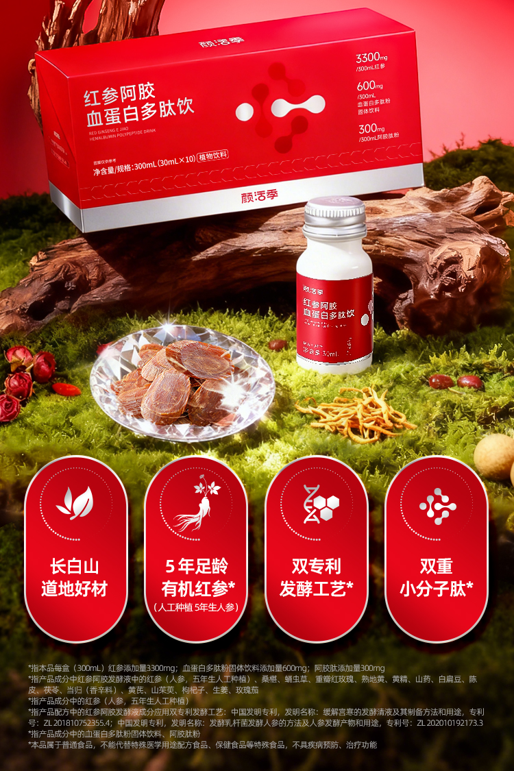 【真材实料】颜活季 红参阿胶血蛋白多肽饮 30ml*10袋/盒 甄选16种草本原材